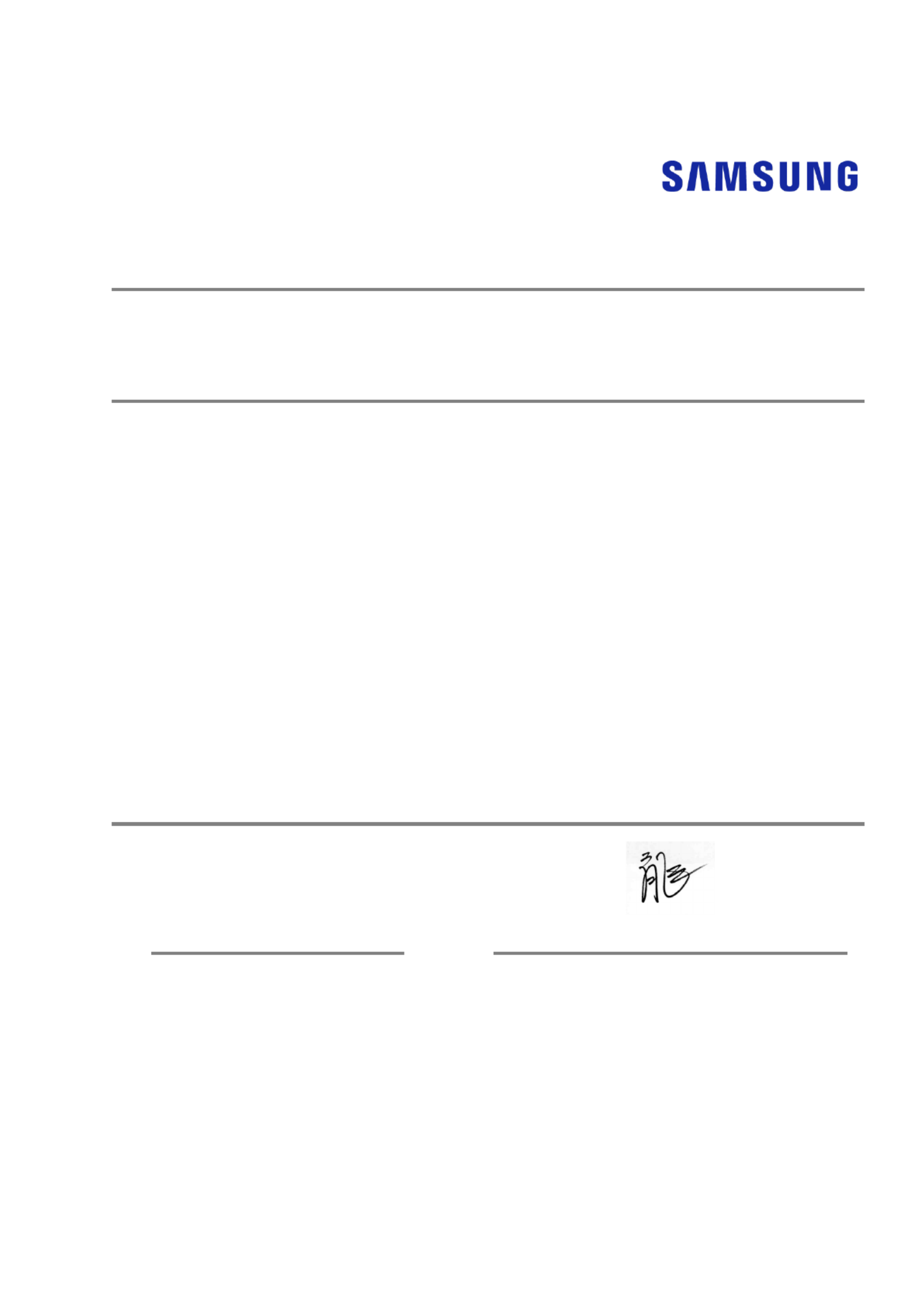 Signed for and on behalf of : Samsung