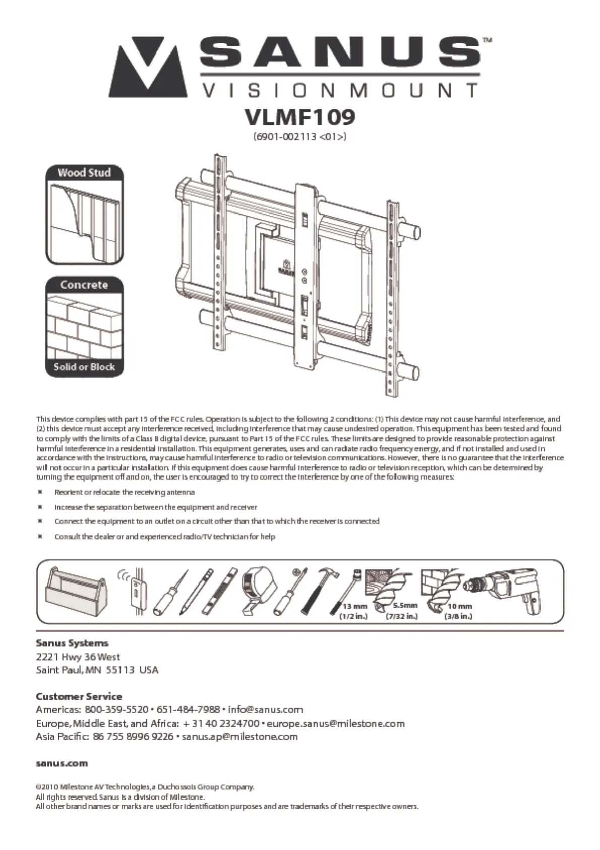 Sanus VLMF109 Handleiding