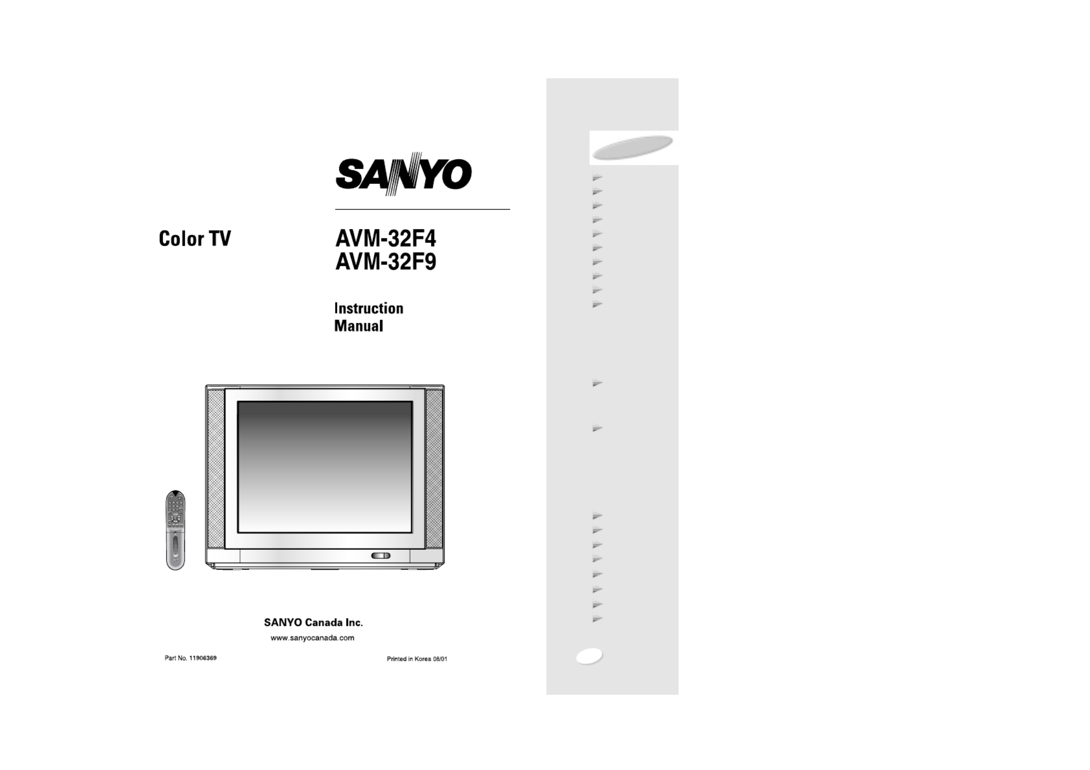 Hier is de Sanyo AVM32F4 (Televisie) gebruikershandleiding. 26 pagina's in taal English met een gewicht van 3.2 Mb. Als u geen antwoorden op uw probleem kunt vinden Vraag het onze community.