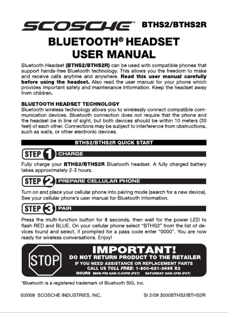 Scosche BTHS2R Handleiding