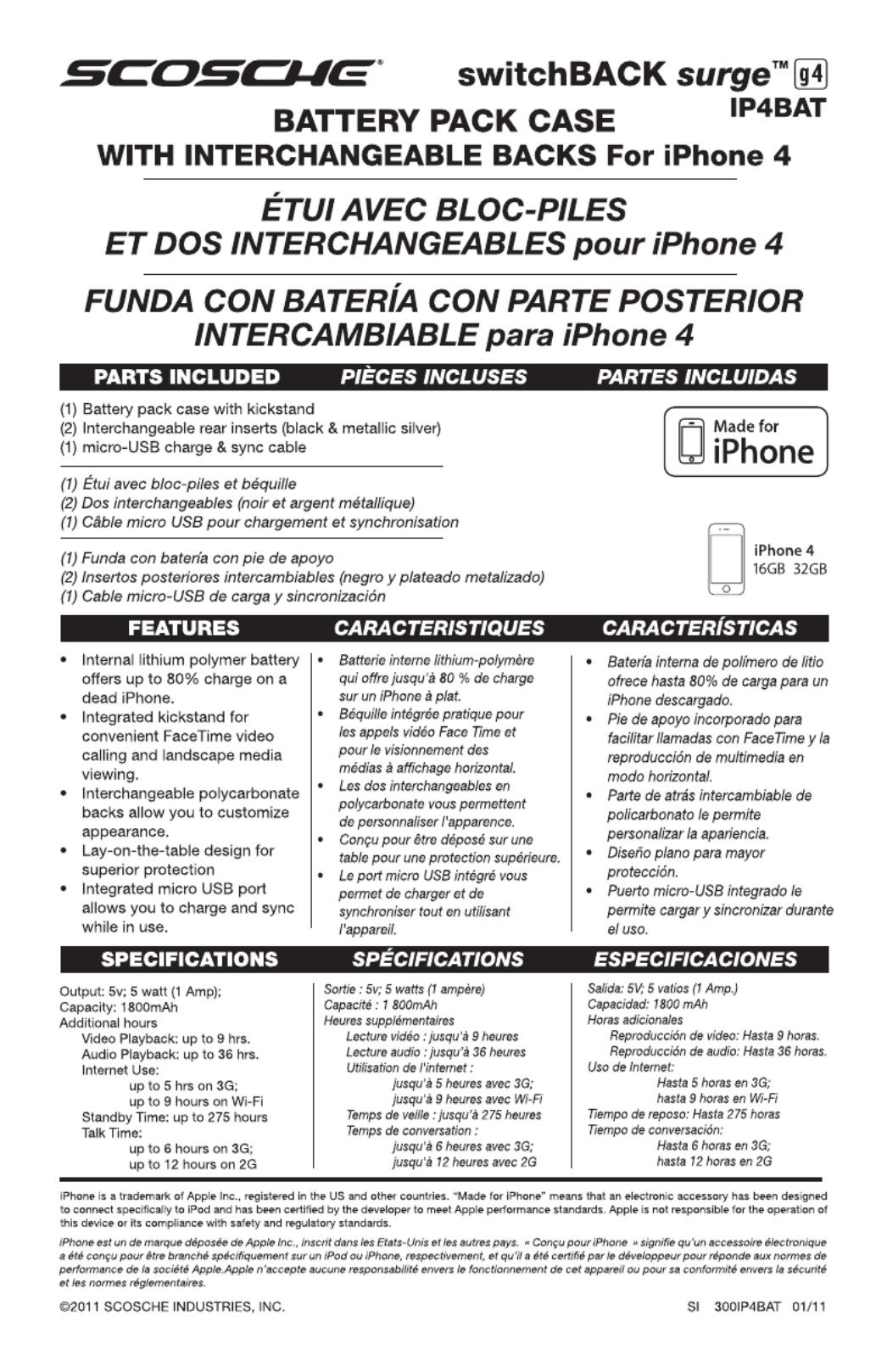 Hier is de Scosche switchBACK surge g4 (Accu) gebruikershandleiding. 4 pagina's in taal Engels met een gewicht van 0.6 Mb. Als u geen antwoorden op uw probleem kunt vinden Vraag het onze community.
