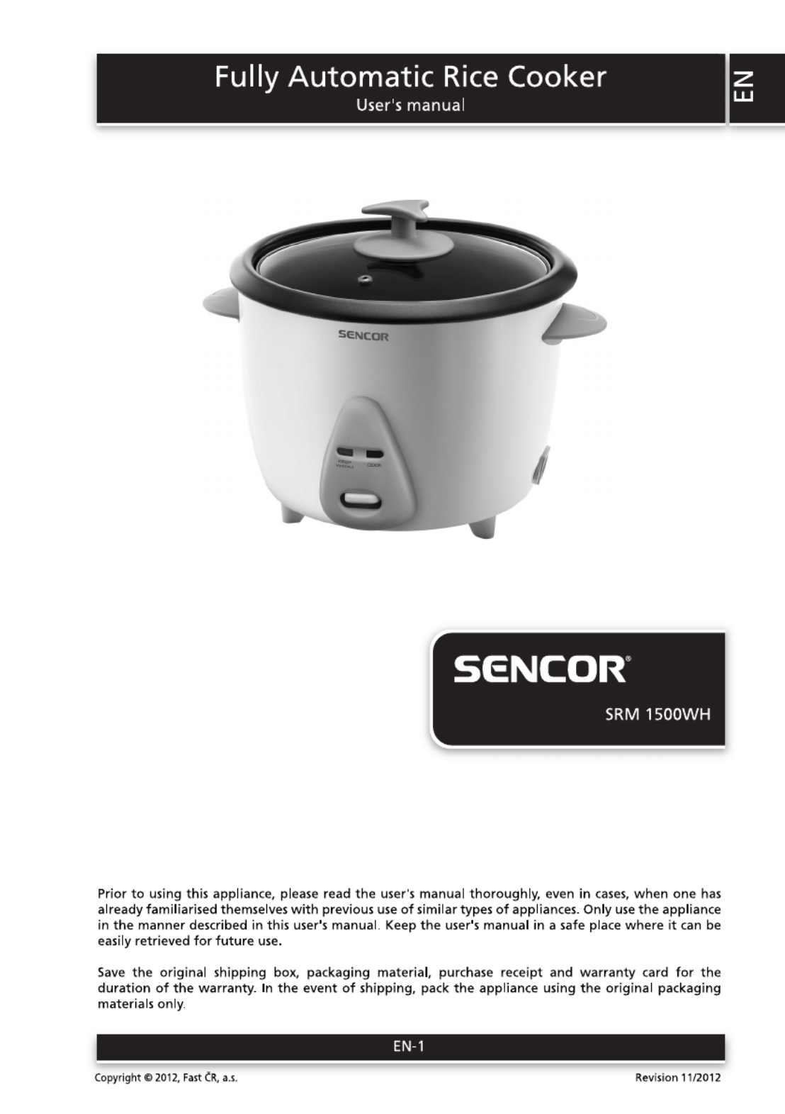 Hier is de Sencor SRM 1500WH (Rijstkoker) gebruikershandleiding. 10 pagina's in taal Engels met een gewicht van 0.7 Mb. Als u geen antwoorden op uw probleem kunt vinden Vraag het onze community.