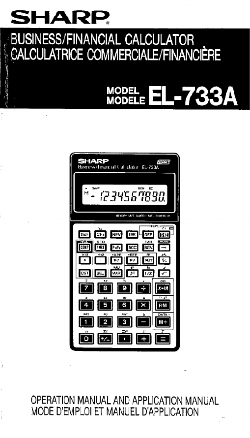 Hier is de Sharp EL-733A (Rekenmachine) gebruikershandleiding. 89 pagina's in taal - met een gewicht van 3.7 Mb. Als u geen antwoorden op uw probleem kunt vinden Vraag het onze community.