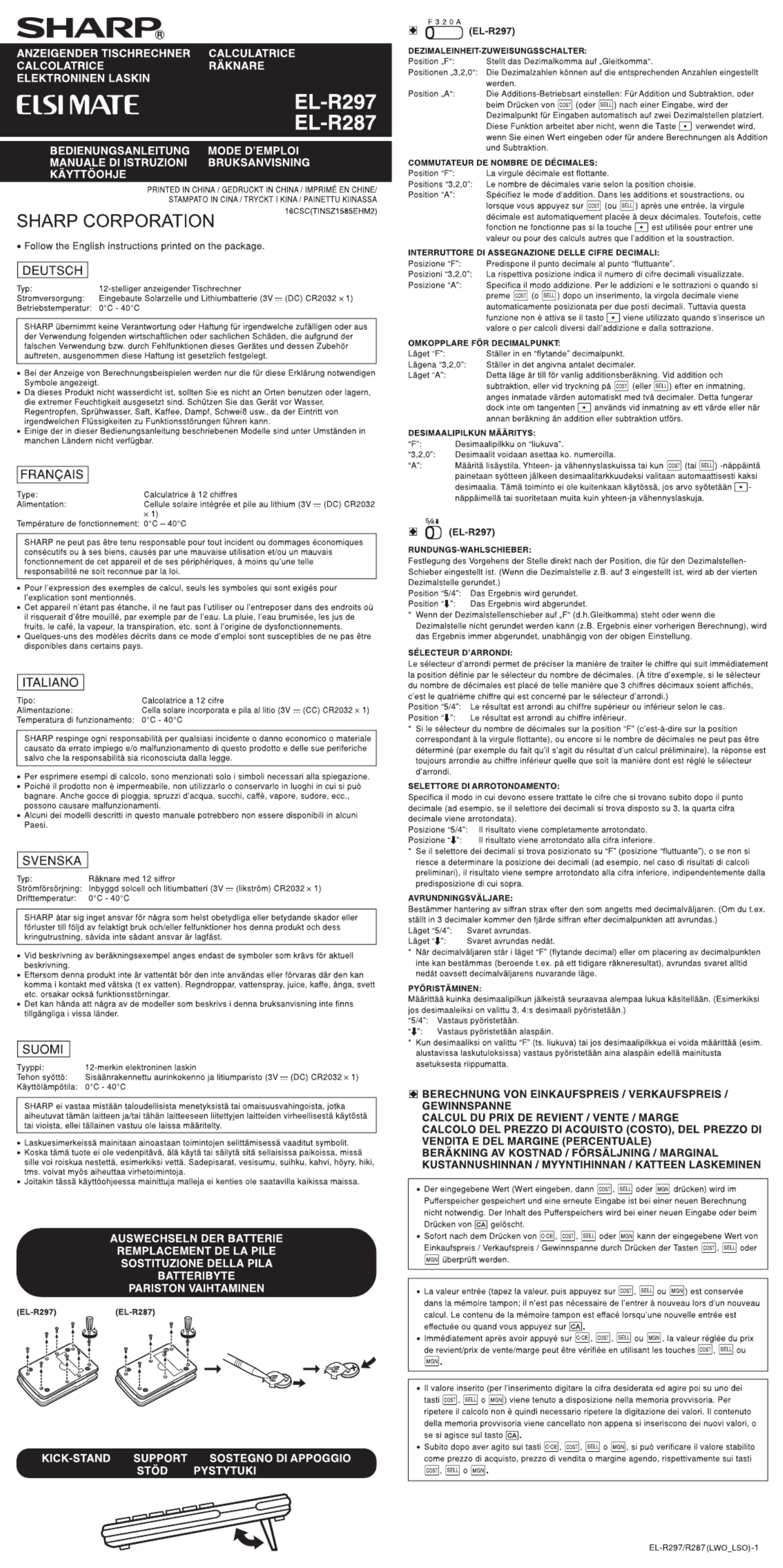 Hier is de Sharp EL-R287 (Rekenmachine) gebruikershandleiding. 2 pagina's in taal - met een gewicht van 0.8 Mb. Als u geen antwoorden op uw probleem kunt vinden Vraag het onze community.
