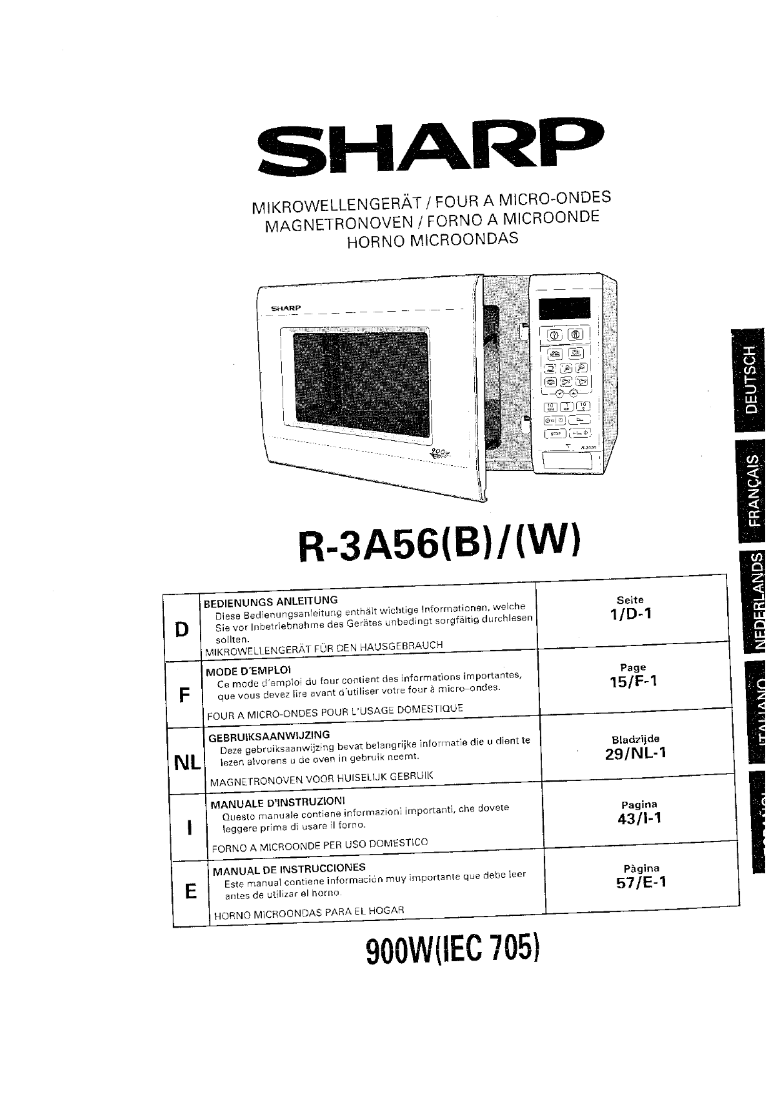 Hier is de Sharp R-3A56 (Magnetron) gebruikershandleiding. 20 pagina's in taal - met een gewicht van 1.5 Mb. Als u geen antwoorden op uw probleem kunt vinden Vraag het onze community.