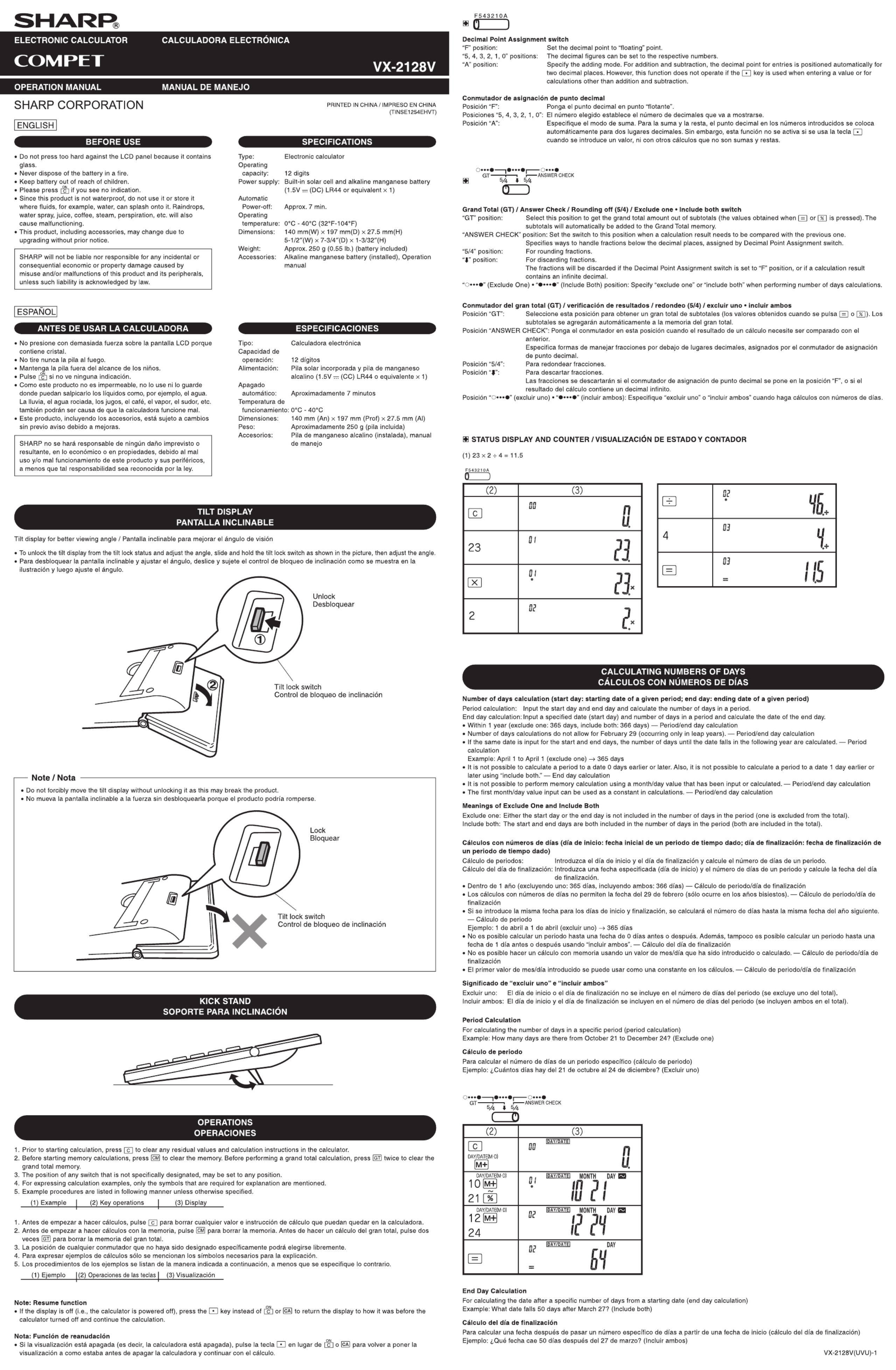 Hier is de Sharp VX-2128V (Rekenmachine) gebruikershandleiding. 2 pagina's in taal - met een gewicht van 1.2 Mb. Als u geen antwoorden op uw probleem kunt vinden Vraag het onze community.