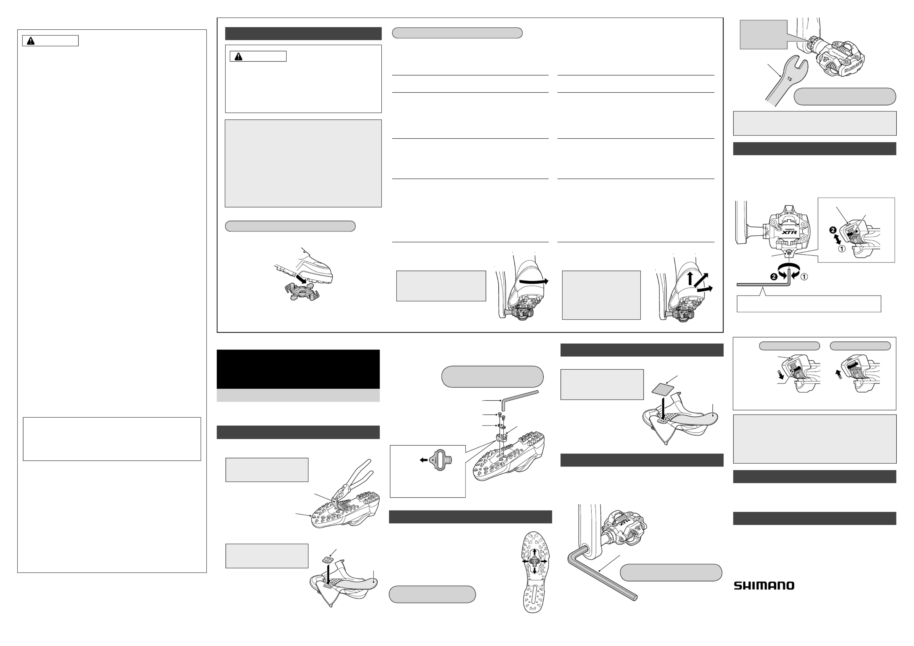 Before attempting to ride with these pedals and shoes, make ●