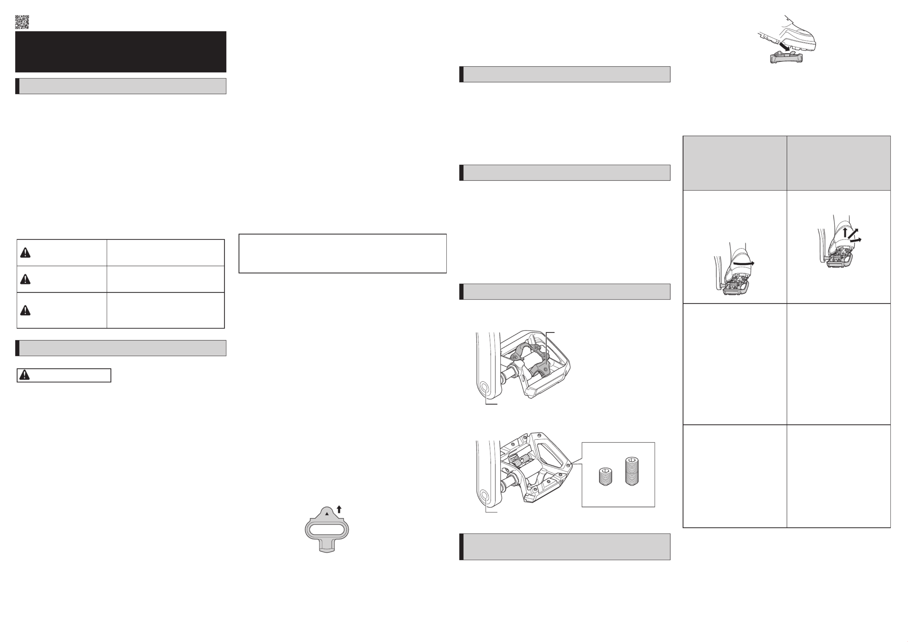 •Alvorens met deze pedalen en schoenplaatjes (schoenen) te gaan