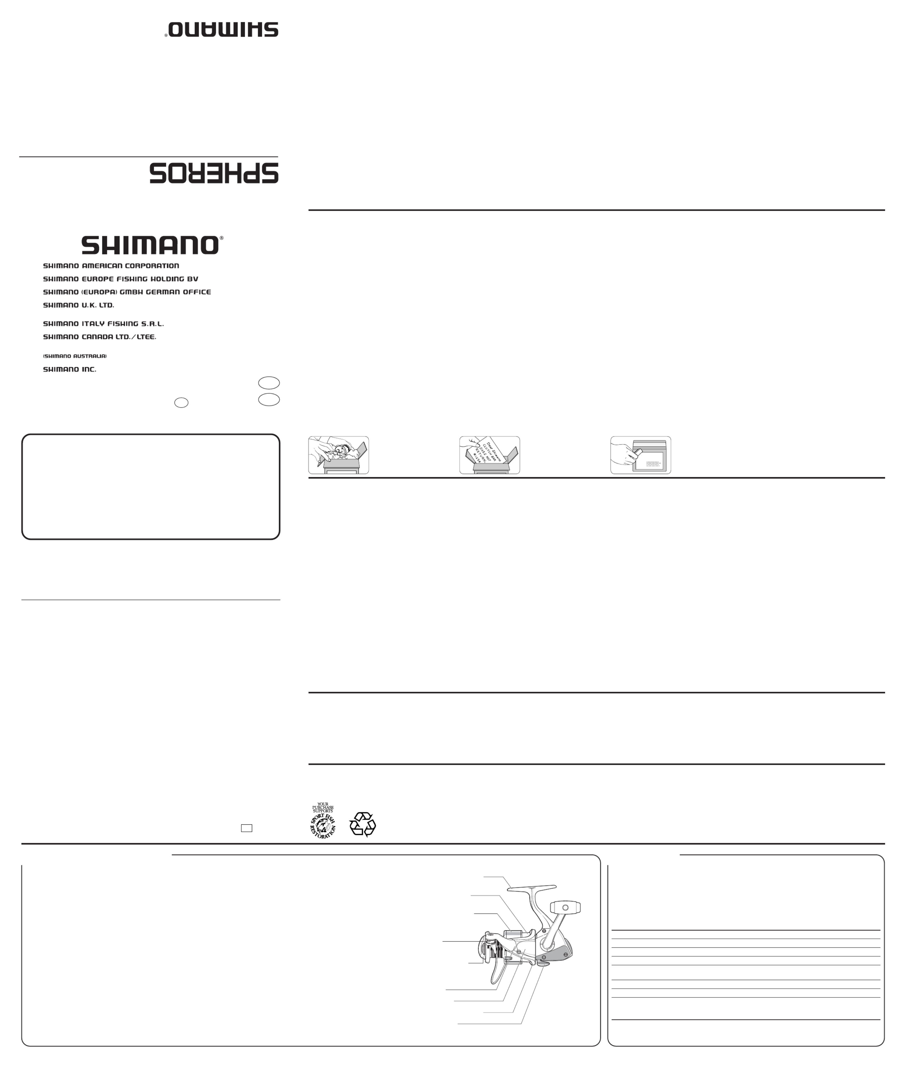 Hier is de Shimano Spheros 8000FA (Vismolen) gebruikershandleiding. 2 pagina's in taal Engels met een gewicht van 1.1 Mb. Als u geen antwoorden op uw probleem kunt vinden Vraag het onze community.