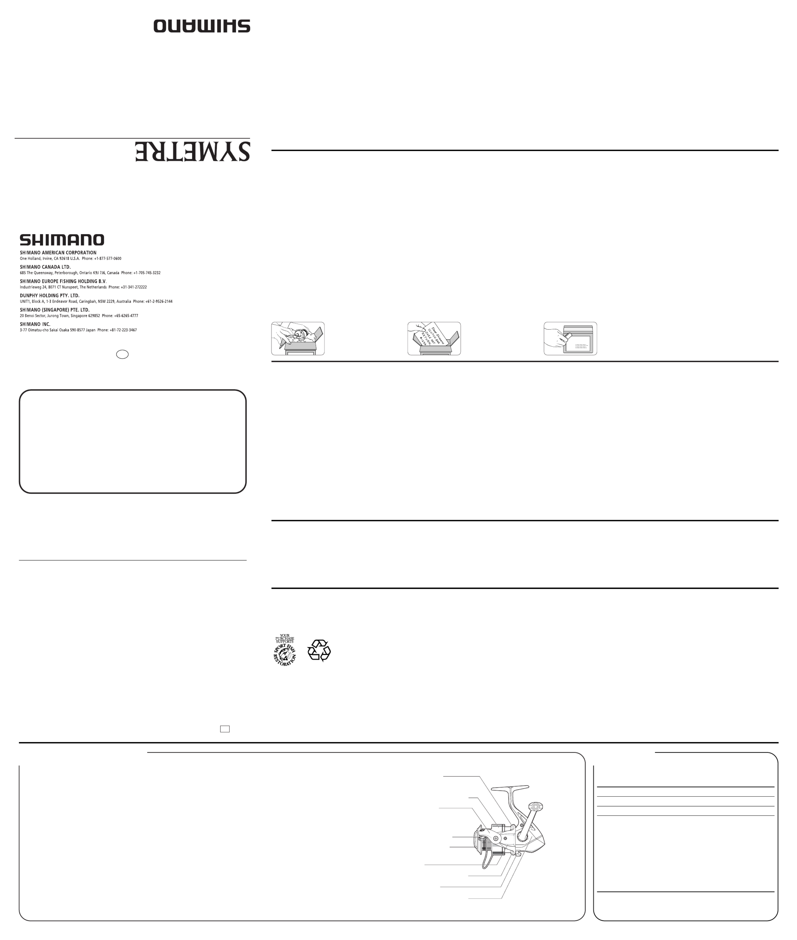 Hier is de Shimano Symetre 4000FI (Vismolen) gebruikershandleiding. 2 pagina's in taal Engels met een gewicht van 0.7 Mb. Als u geen antwoorden op uw probleem kunt vinden Vraag het onze community.