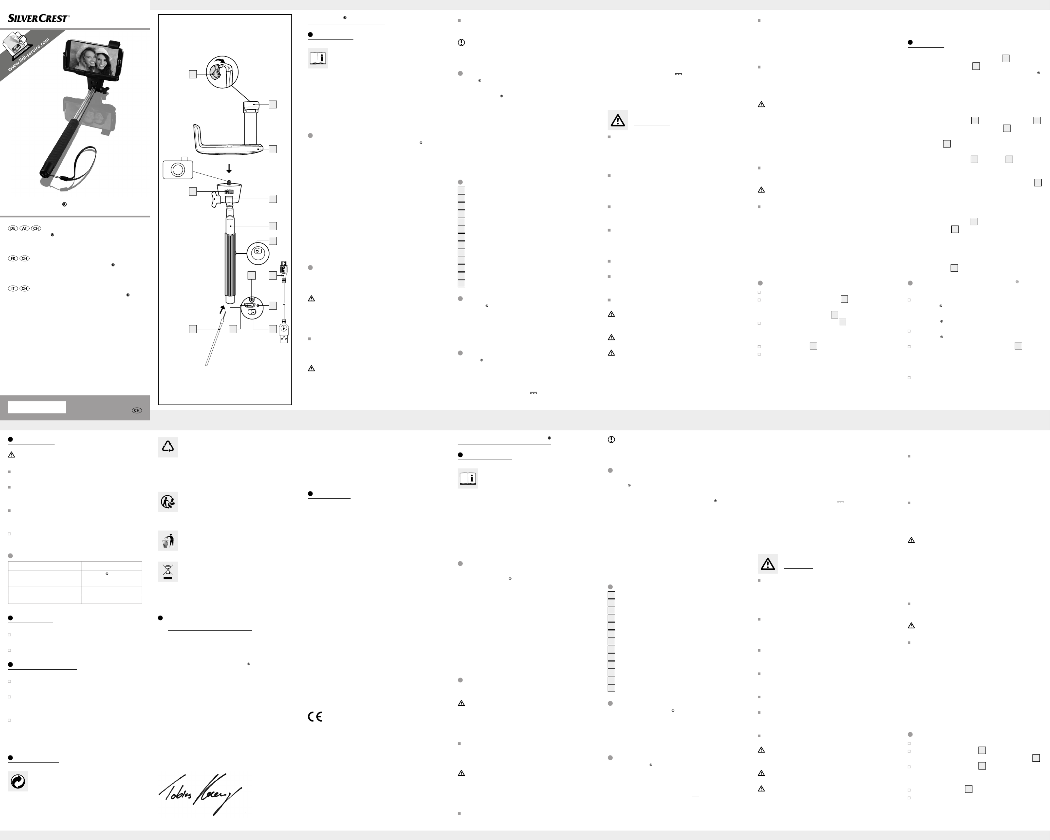 Hier is de Silvercrest IAN 282359 (Selfiesticks) gebruikershandleiding. 3 pagina's in taal met een gewicht van 0.4 Mb. Als u geen antwoorden op uw probleem kunt vinden Vraag het onze community.