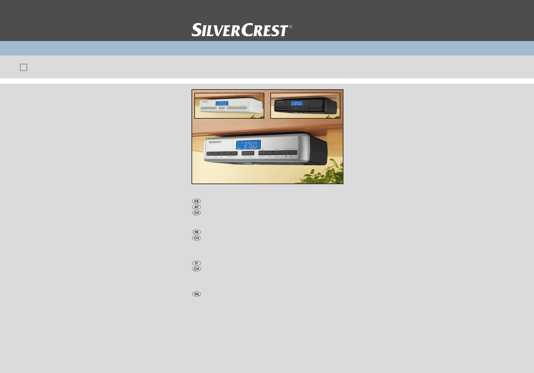 Hier is de Silvercrest KH 2396 Radio (Radio) gebruikershandleiding. 70 pagina's in taal Deutsch, Français, Italiano, Nederlands met een gewicht van 0.7 Mb. Als u geen antwoorden op uw probleem kunt vinden Vraag het onze community.