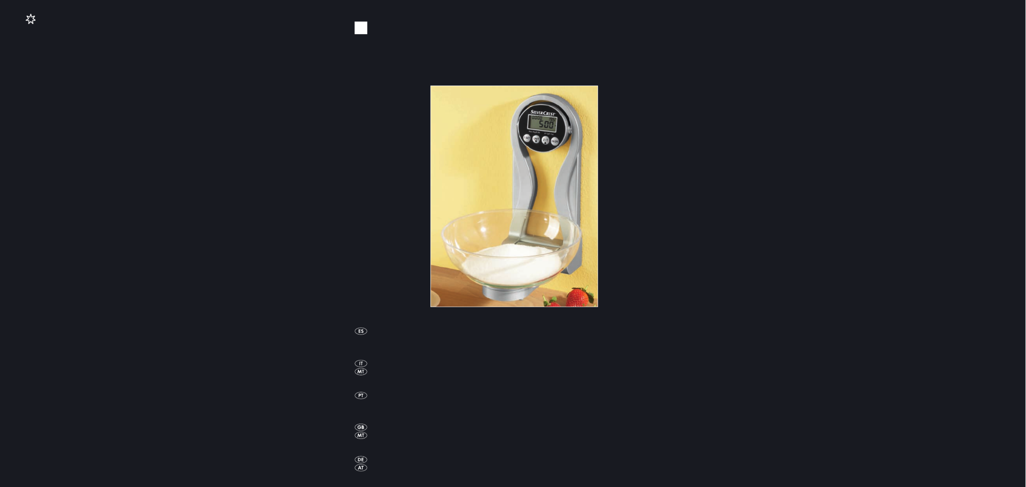 Hier is de Silvercrest KH1159 (Keukenweegschaal) gebruikershandleiding. 81 pagina's in taal Engels met een gewicht van 1.8 Mb. Als u geen antwoorden op uw probleem kunt vinden Vraag het onze community.