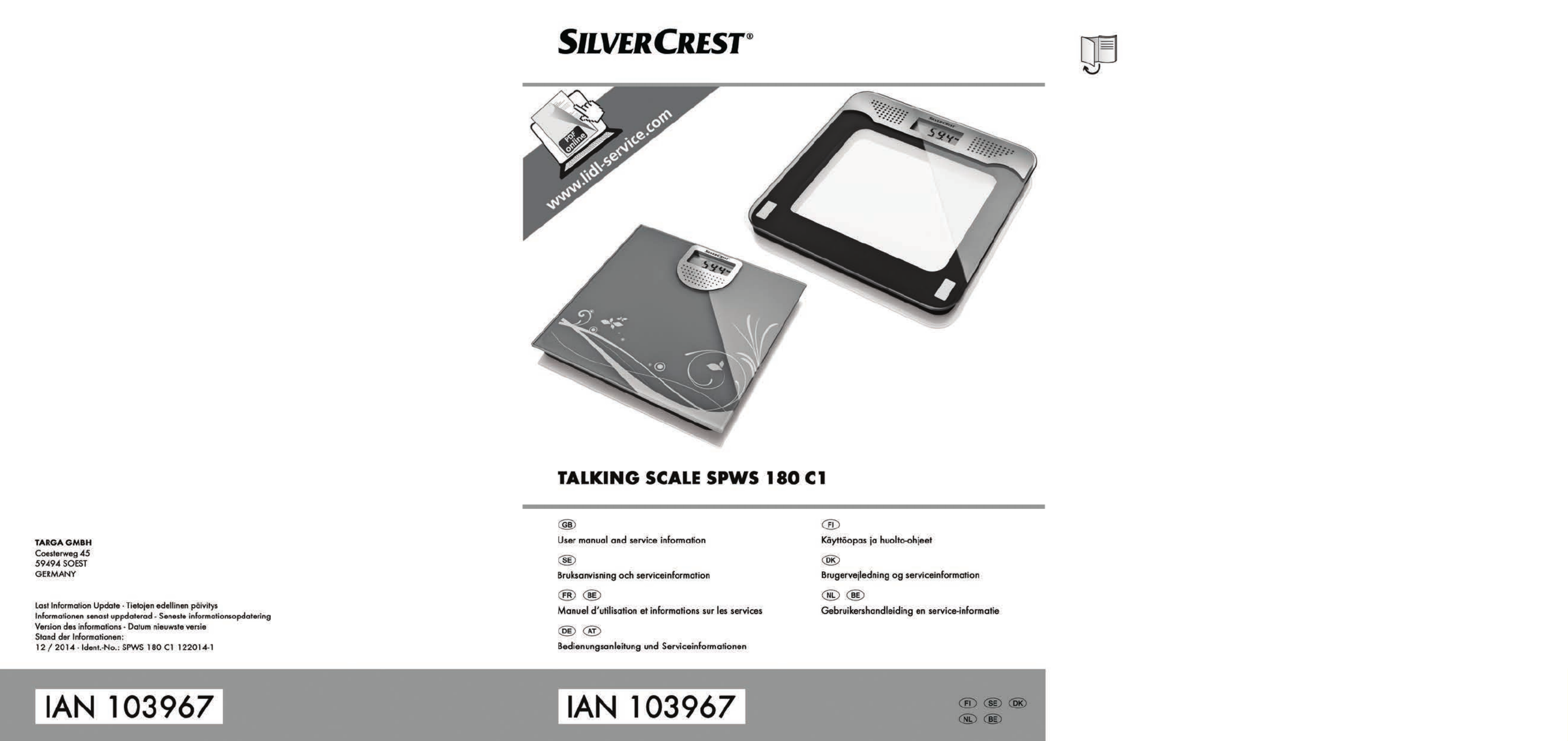 Hier is de Silvercrest SPWS 180 D1 (Weegschaal) gebruikershandleiding. 75 pagina's in taal Nederlands met een gewicht van 4.8 Mb. Als u geen antwoorden op uw probleem kunt vinden Vraag het onze community.