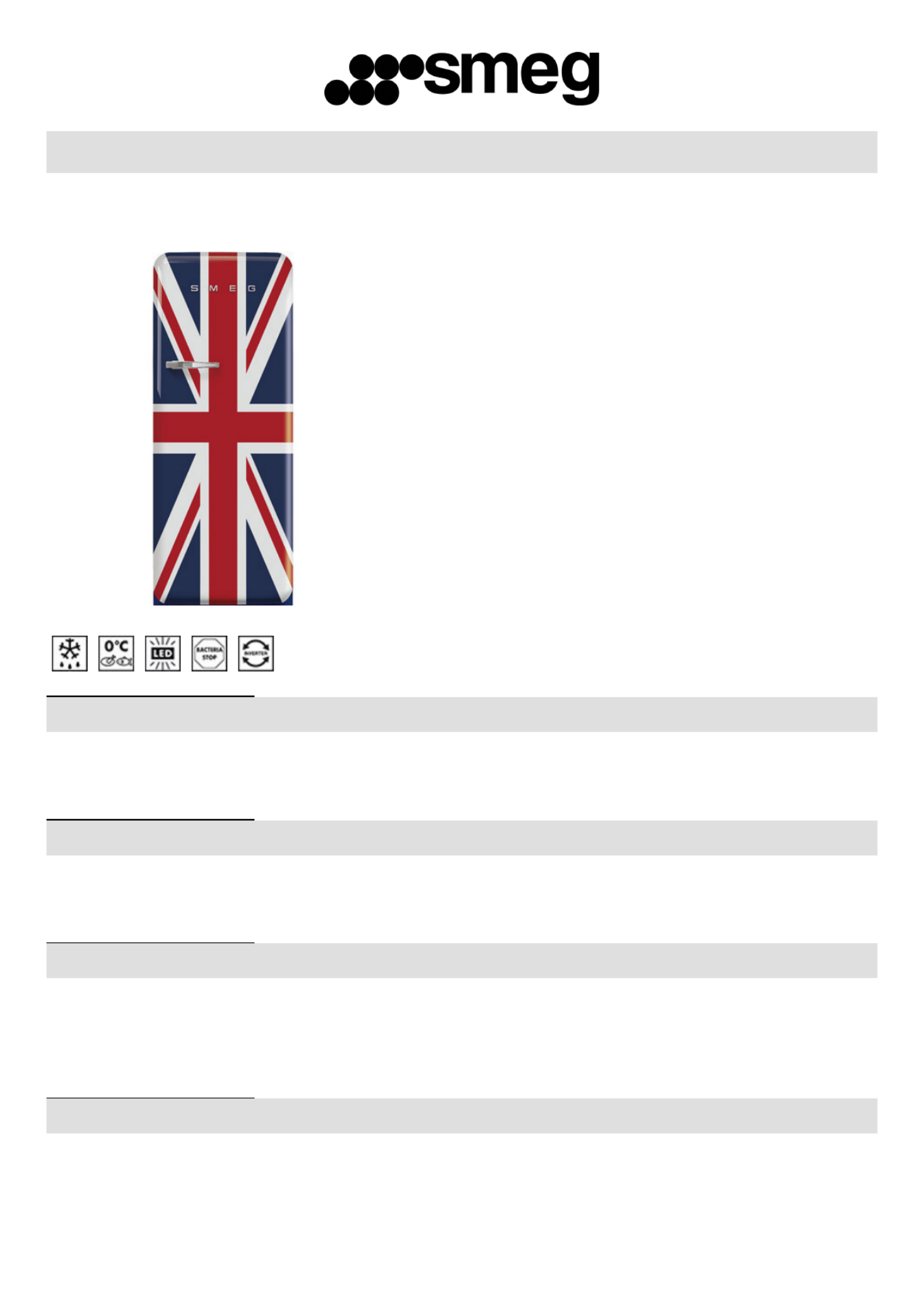 Hier is de Smeg FAB28URDUJ3 (Koelkast) gebruikershandleiding. 4 pagina's in taal Engels met een gewicht van 0.4 Mb. Als u geen antwoorden op uw probleem kunt vinden Vraag het onze community.
