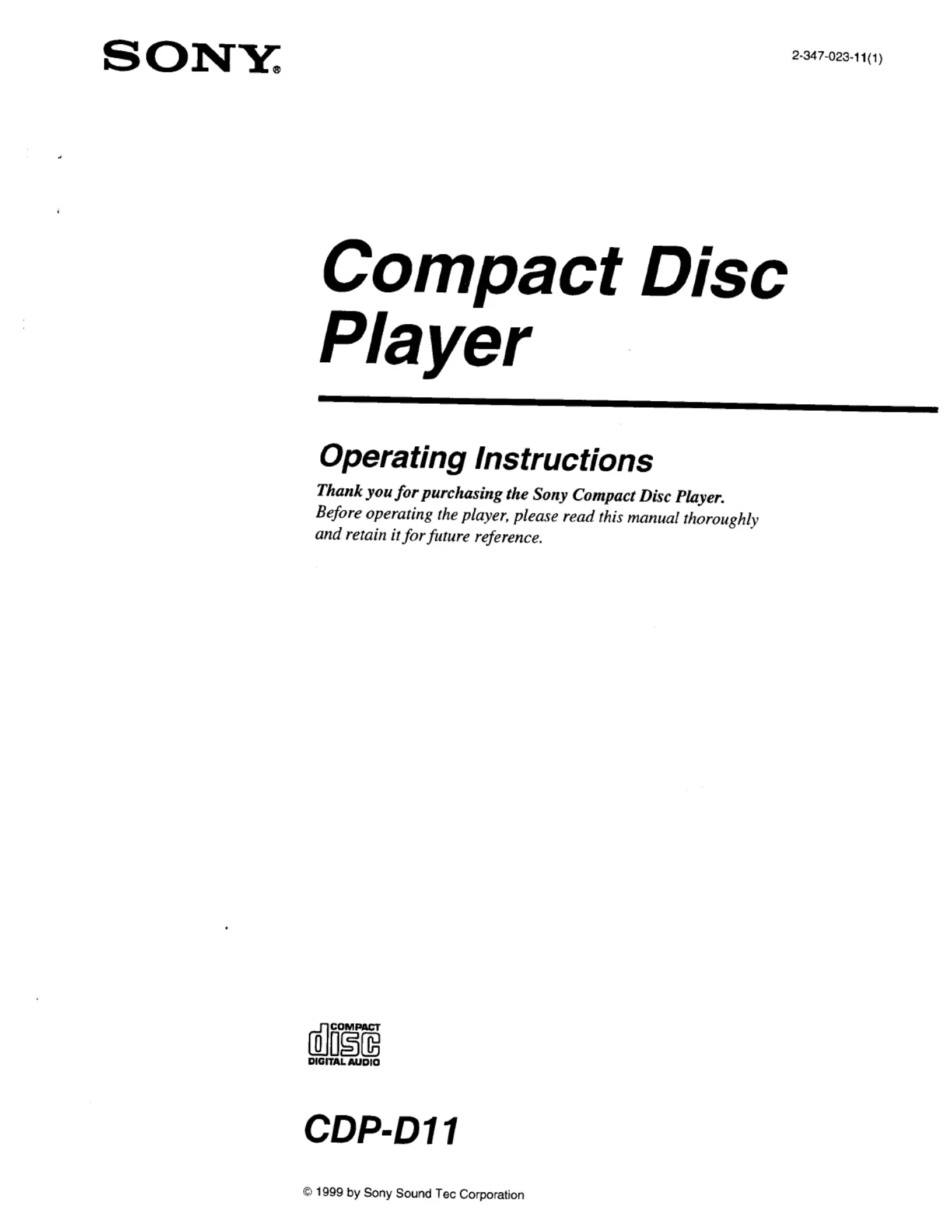 Hier is de Sony CDP-D11 (Niet gecategoriseerd) gebruikershandleiding. 23 pagina's in taal met een gewicht van 3,193,360.0 Mb. Als u geen antwoorden op uw probleem kunt vinden Vraag het onze community.