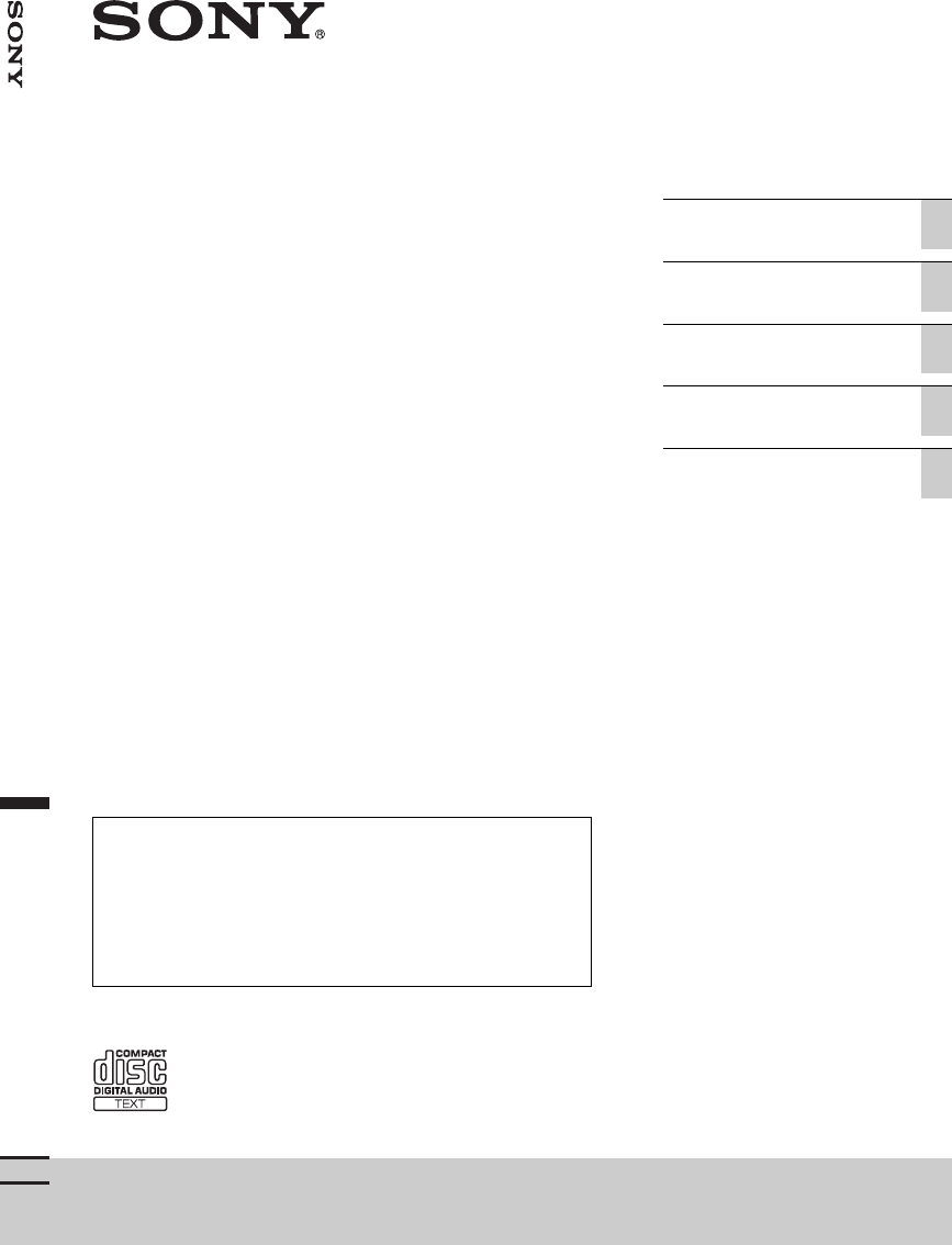Hier is de Sony CDX-GT470UM (Entertainment voor in de auto en op het water) gebruikershandleiding. 128 pagina's in taal met een gewicht van 4.0 Mb. Als u geen antwoorden op uw probleem kunt vinden Vraag het onze community.