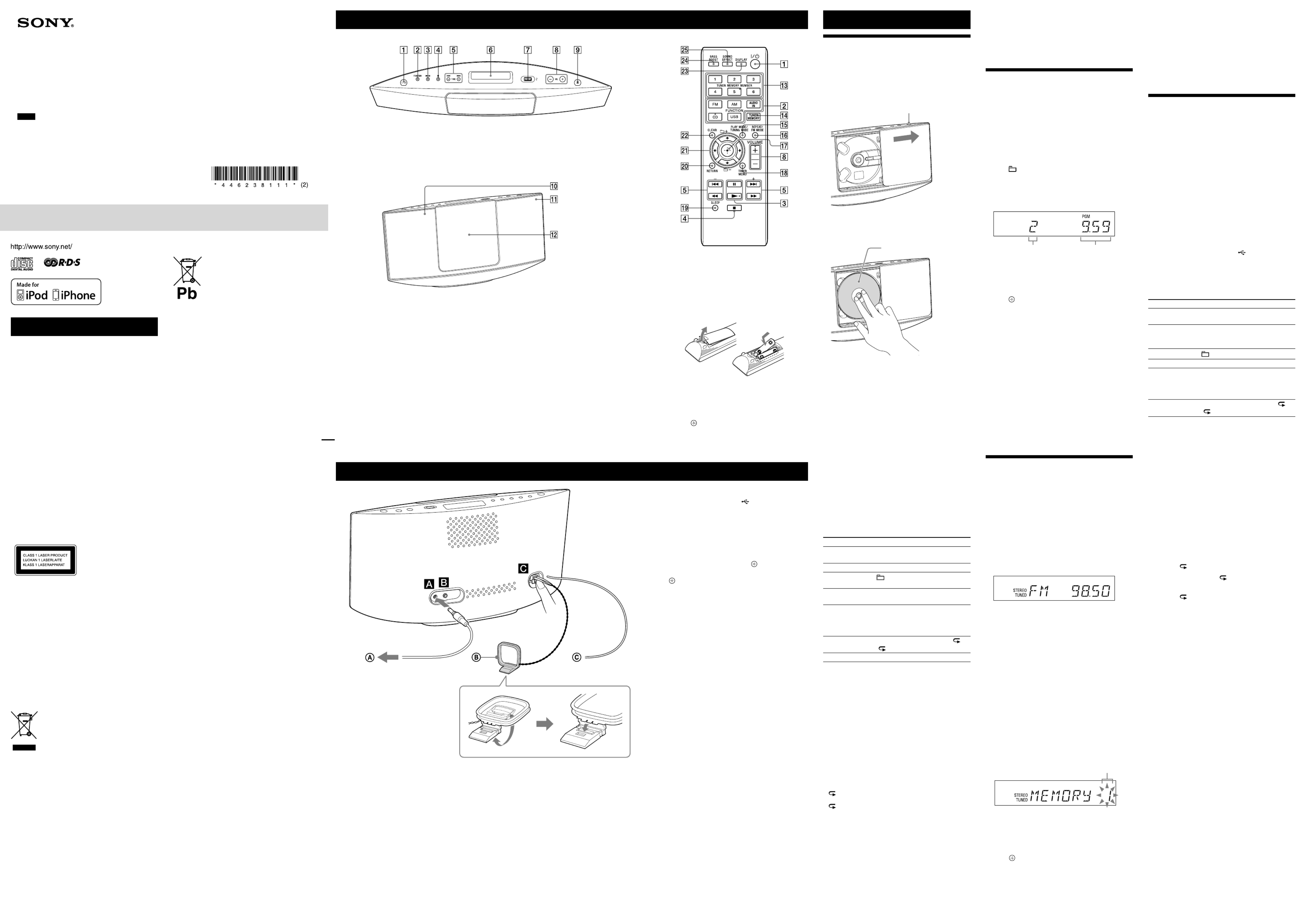 Hier is de Sony CMT-V11iP (Hifi systeem) gebruikershandleiding. 2 pagina's in taal Engels met een gewicht van 0.4 Mb. Als u geen antwoorden op uw probleem kunt vinden Vraag het onze community.