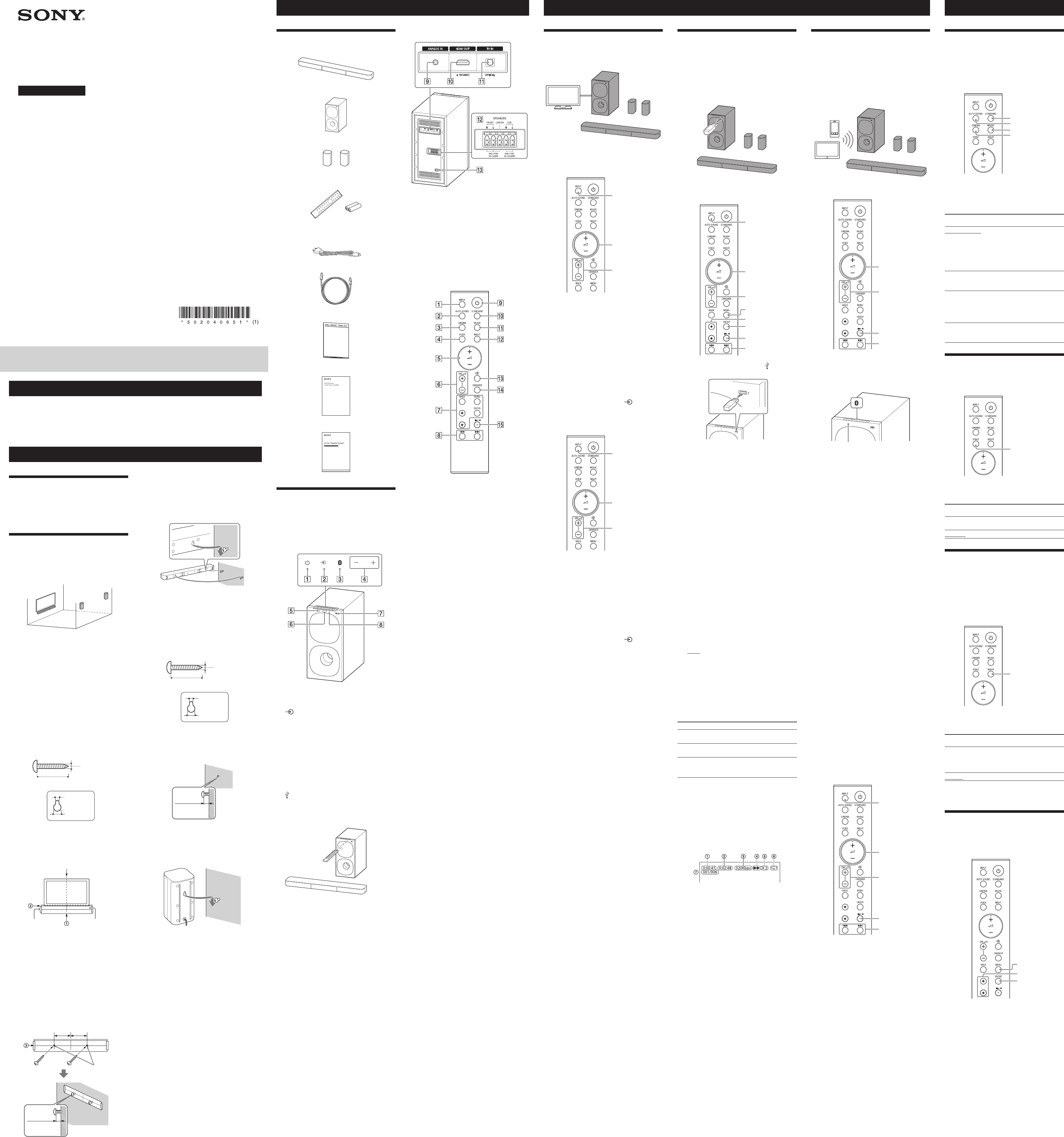 Hier is de Sony HT-S20R (Audio en video) gebruikershandleiding. 2 pagina's in taal met een gewicht van 0.6 Mb. Als u geen antwoorden op uw probleem kunt vinden Vraag het onze community.