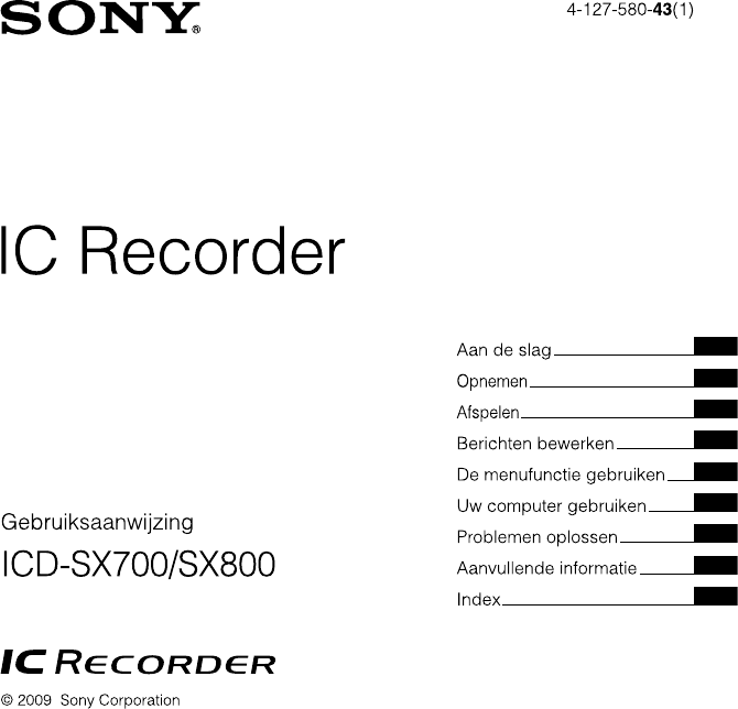 Hier is de Sony ICD-SX700 (Audio en video) gebruikershandleiding. 136 pagina's in taal met een gewicht van 1.5 Mb. Als u geen antwoorden op uw probleem kunt vinden Vraag het onze community.