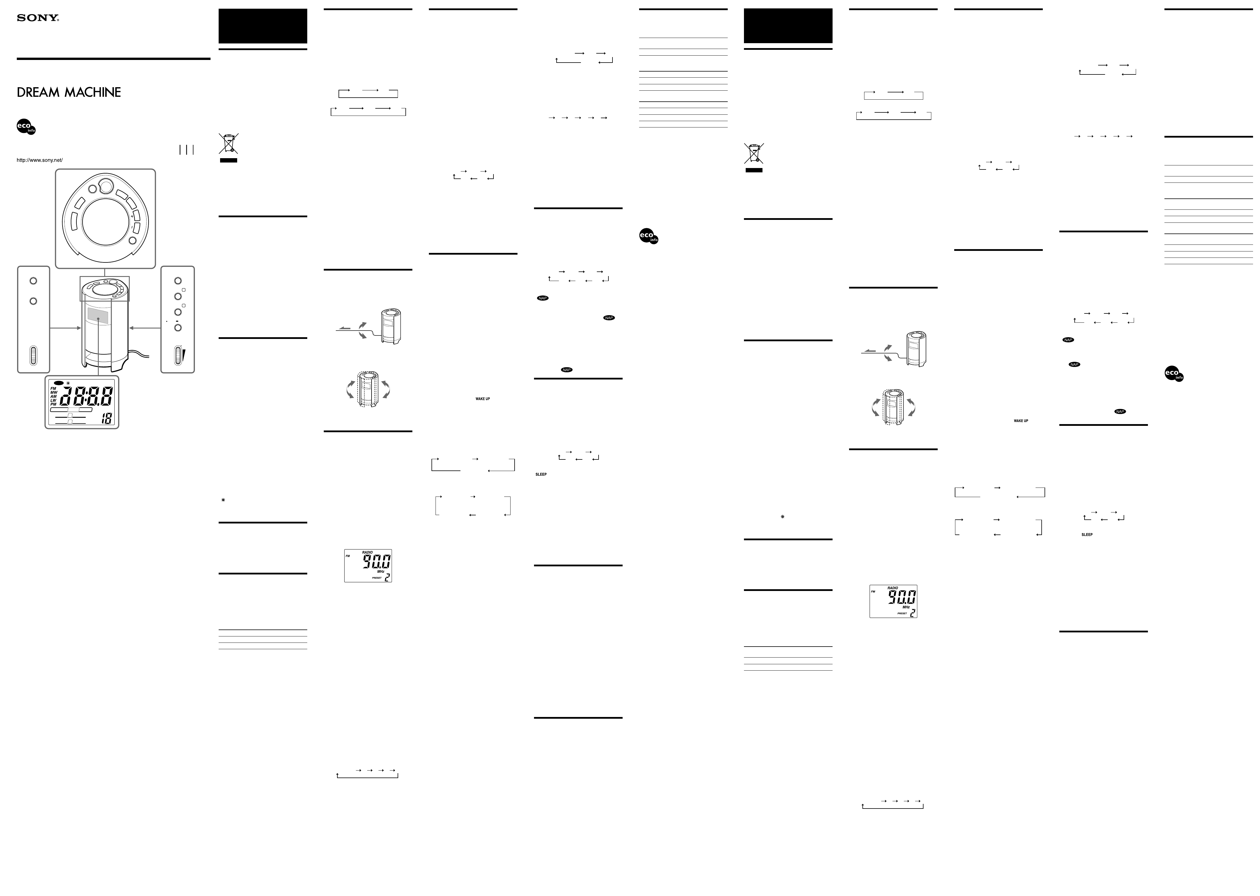 Hier is de Sony ICF-C773 (Audio en video) gebruikershandleiding. 2 pagina's in taal English met een gewicht van 0.5 Mb. Als u geen antwoorden op uw probleem kunt vinden Vraag het onze community.