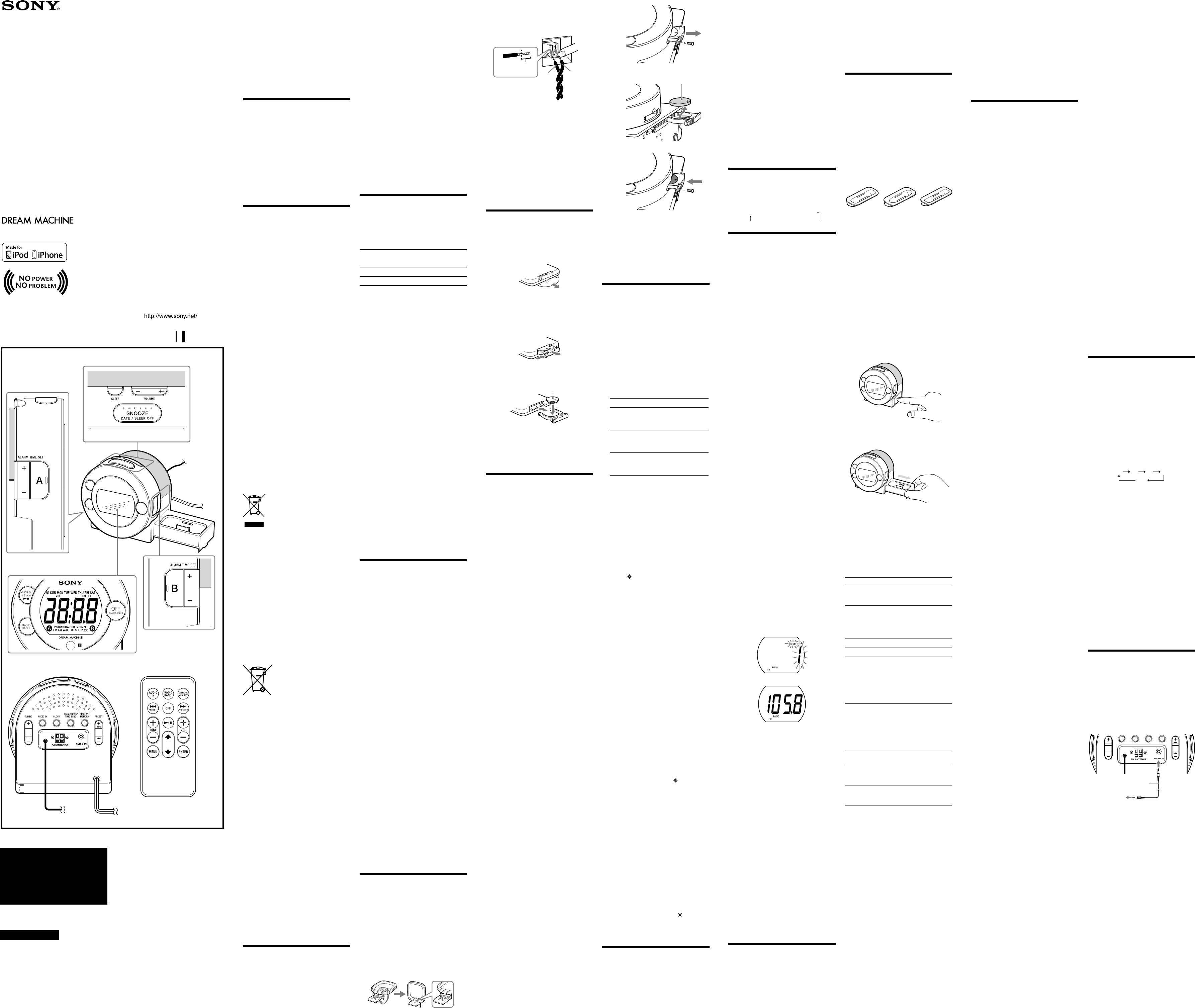Hier is de Sony ICF-C7iP (Audio en video) gebruikershandleiding. 2 pagina's in taal met een gewicht van 1.2 Mb. Als u geen antwoorden op uw probleem kunt vinden Vraag het onze community.