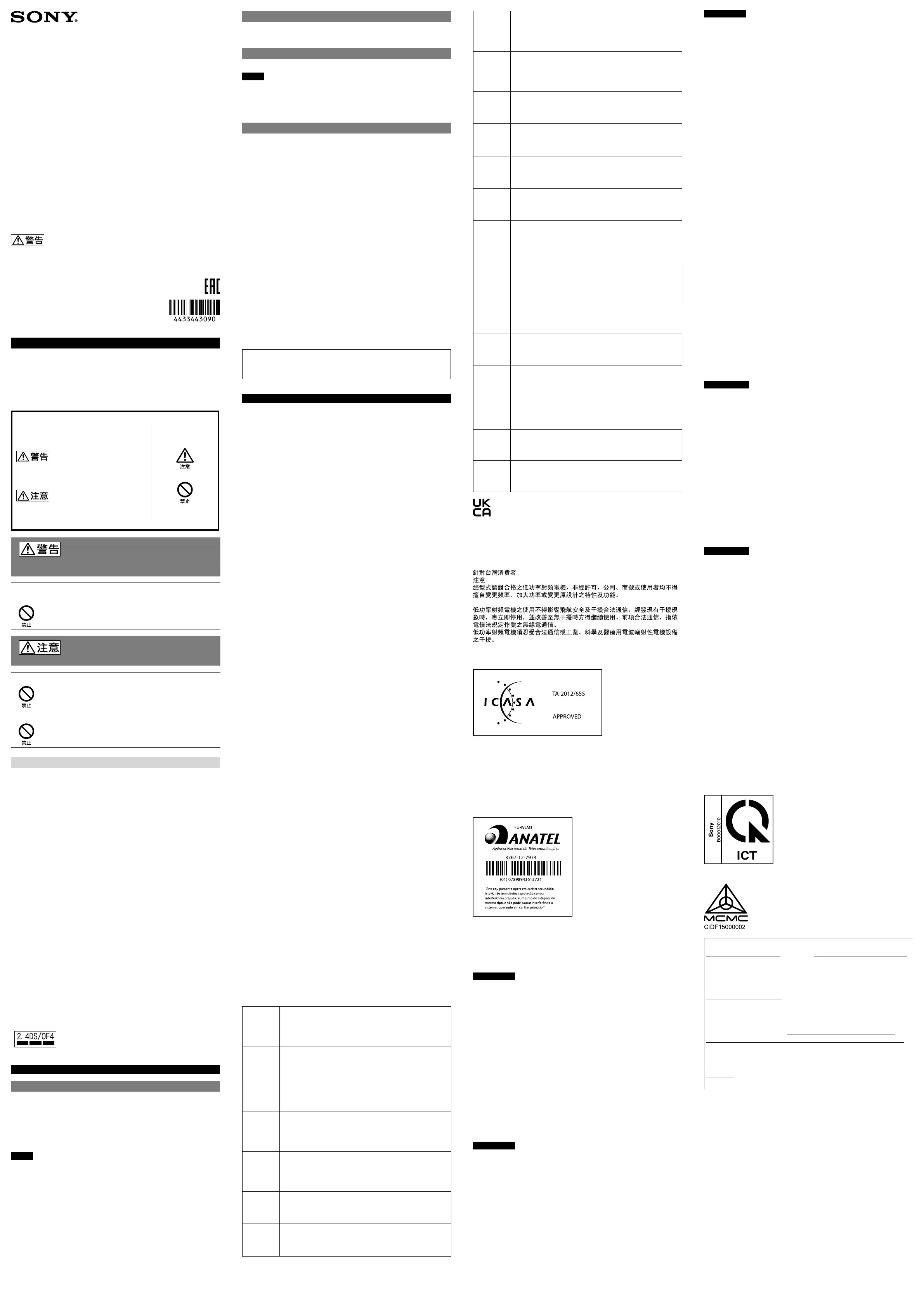 Hier is de Sony IFU-WLM3 (Niet gecategoriseerd) gebruikershandleiding. 2 pagina's in taal Engels met een gewicht van 1,615,940.0 Mb. Als u geen antwoorden op uw probleem kunt vinden Vraag het onze community.