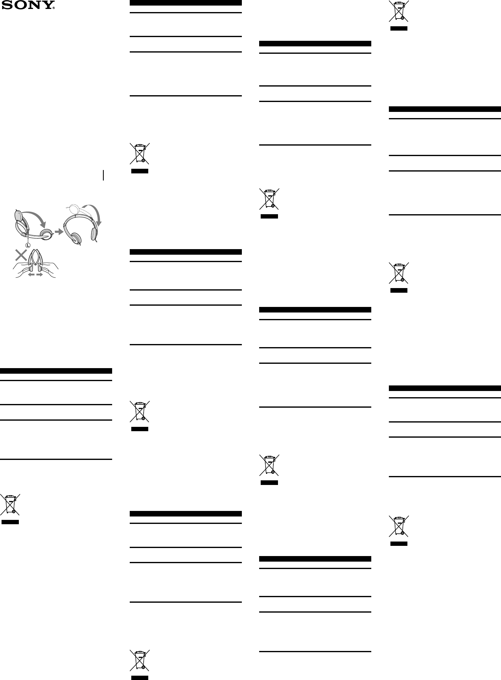 Do not put weight or pressure on the headphones as it may cause the