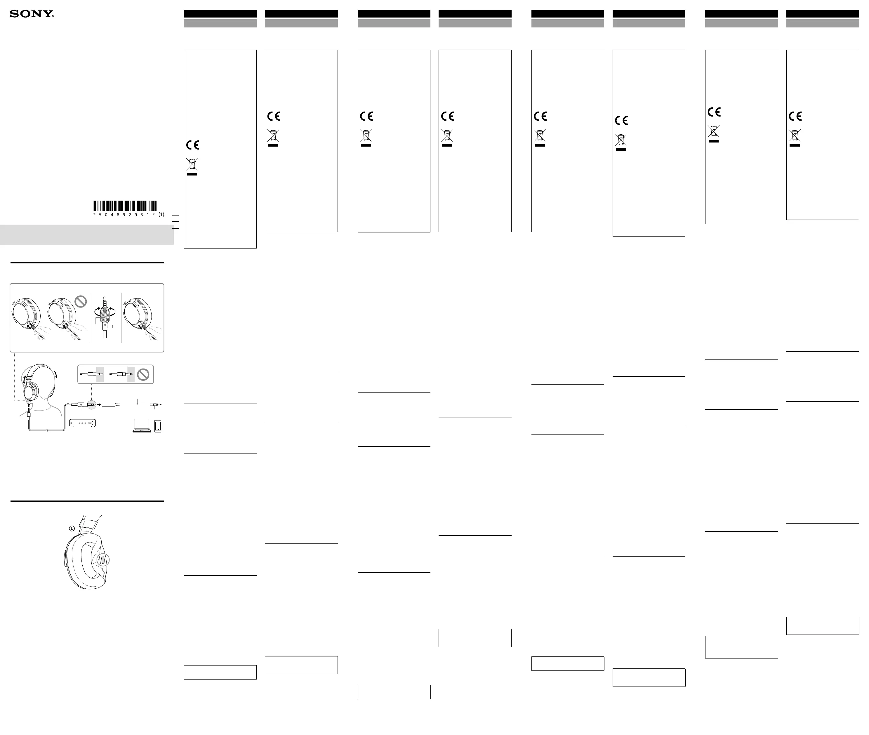 Sony MDR-MV1 Handleiding