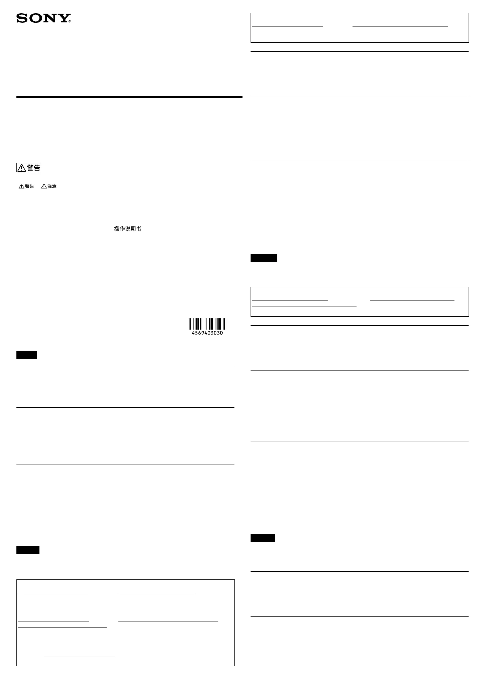 SONY LIMITED WARRANTY - Please visit http://www.sonybiz.ca/pro/lang/en/ca/article/