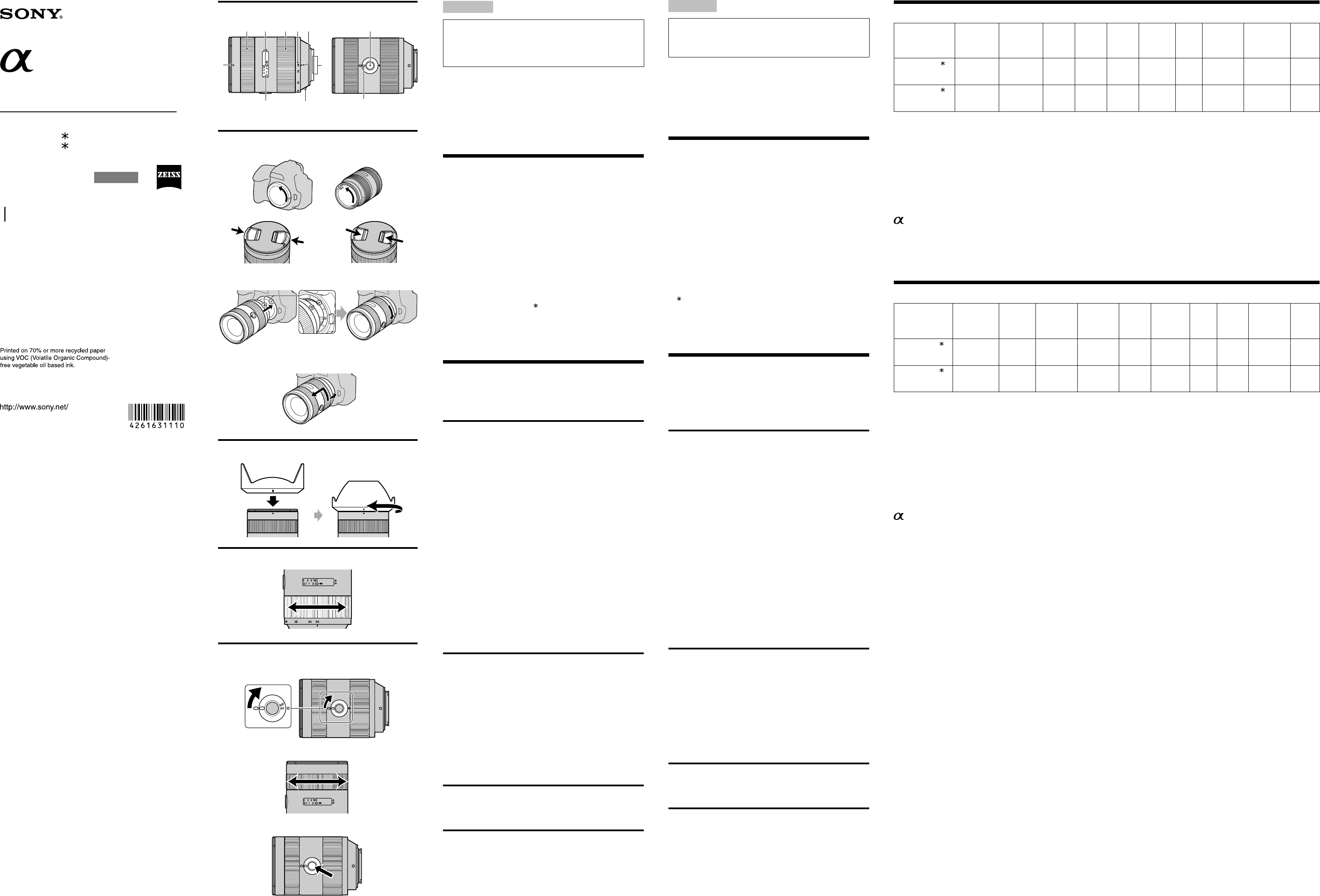 Hier is de Sony SAL2470Z (Camera's en camcorders) gebruikershandleiding. 2 pagina's in taal met een gewicht van 0.9 Mb. Als u geen antwoorden op uw probleem kunt vinden Vraag het onze community.
