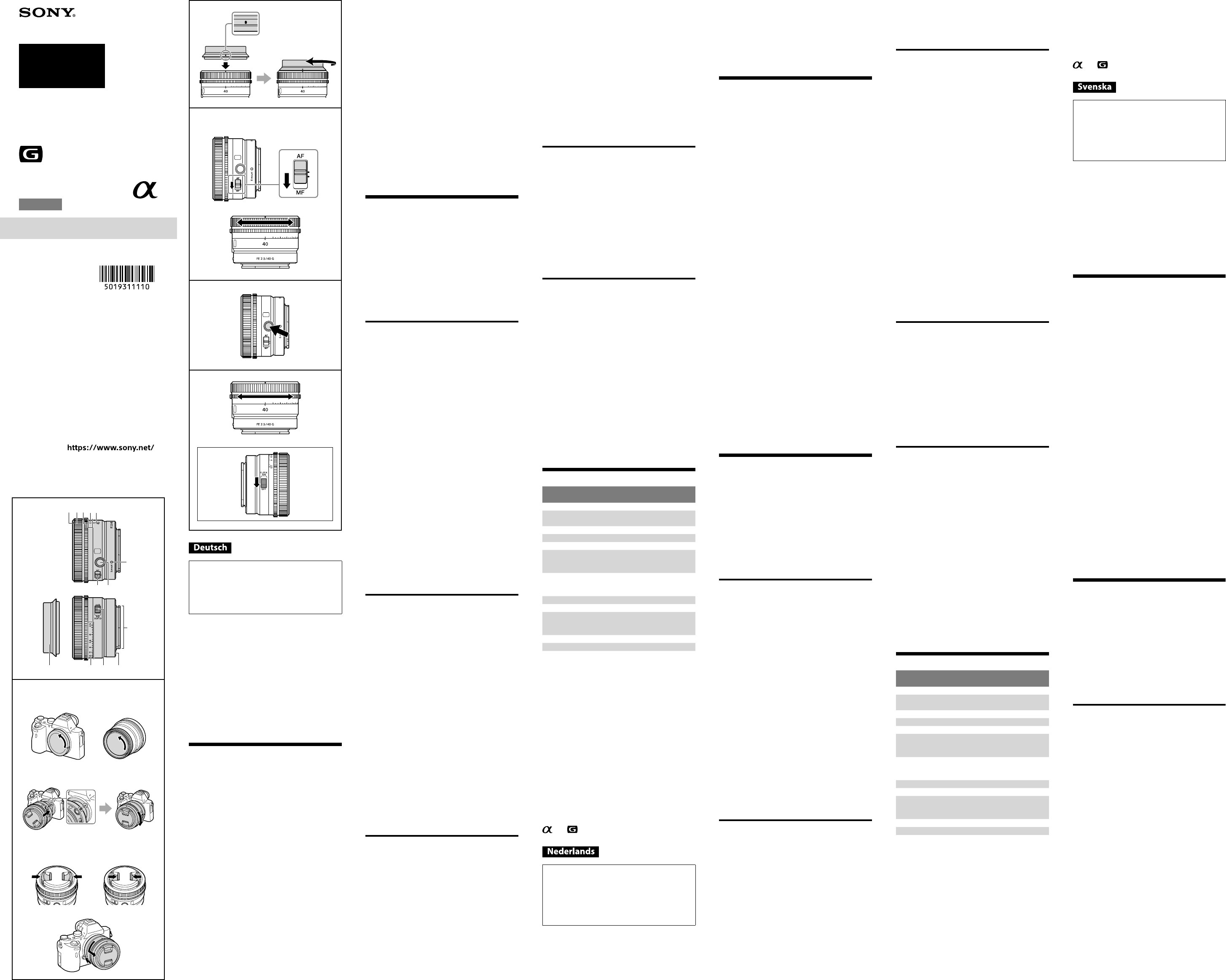 Hier is de Sony SEL40F25G (Camera's en camcorders) gebruikershandleiding. 2 pagina's in taal Nederlands met een gewicht van 0.3 Mb. Als u geen antwoorden op uw probleem kunt vinden Vraag het onze community.