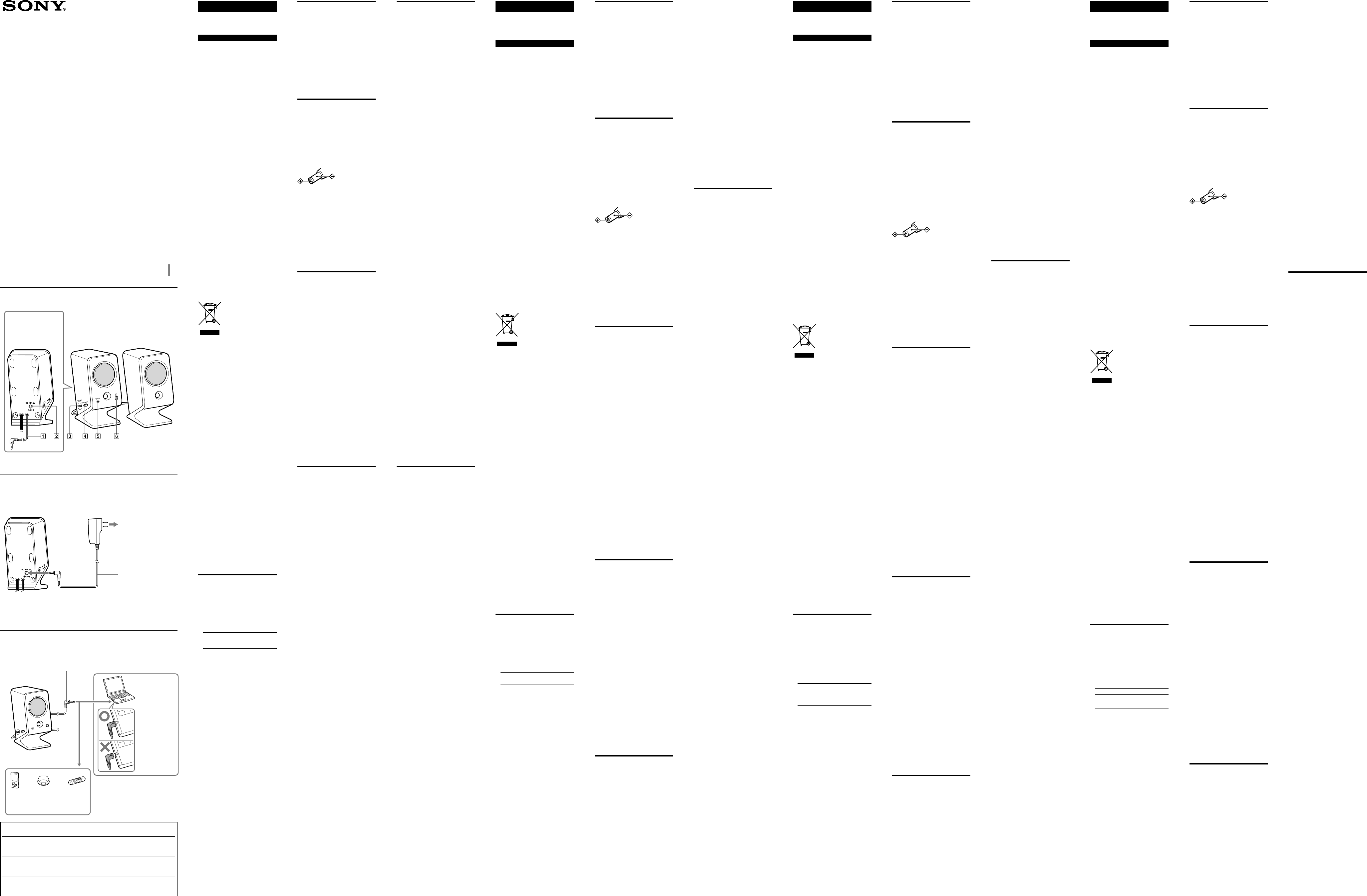 Hier is de Sony SRS-A3 (Audio en video) gebruikershandleiding. 2 pagina's in taal met een gewicht van 0.5 Mb. Als u geen antwoorden op uw probleem kunt vinden Vraag het onze community.