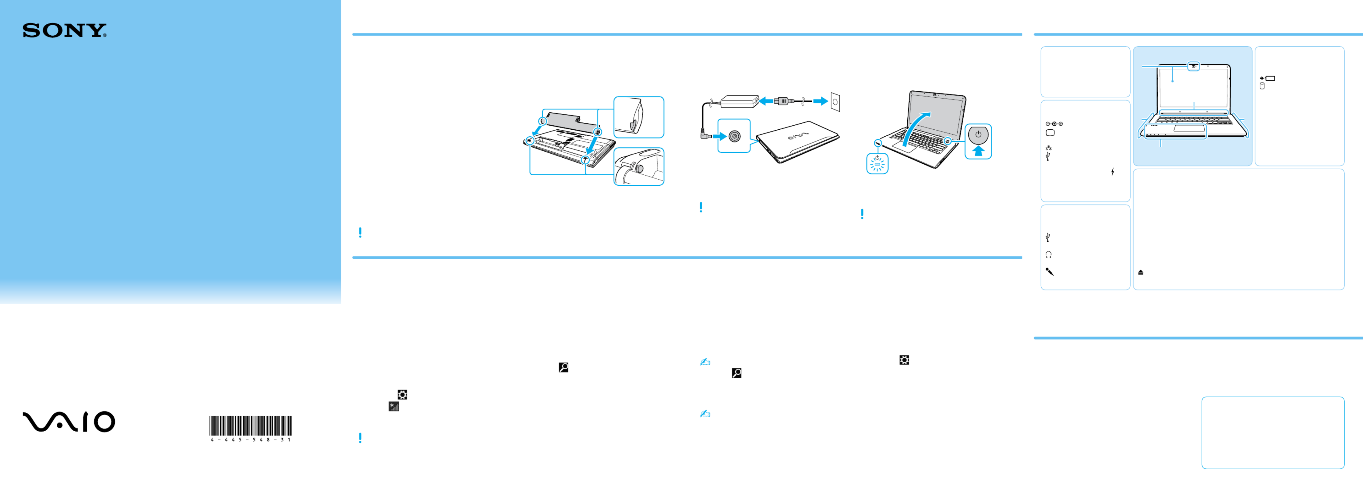 Hier is de Sony Vaio SVE14A25CBP (Laptop) gebruikershandleiding. 4 pagina's in taal Engels met een gewicht van 0.6 Mb. Als u geen antwoorden op uw probleem kunt vinden Vraag het onze community.