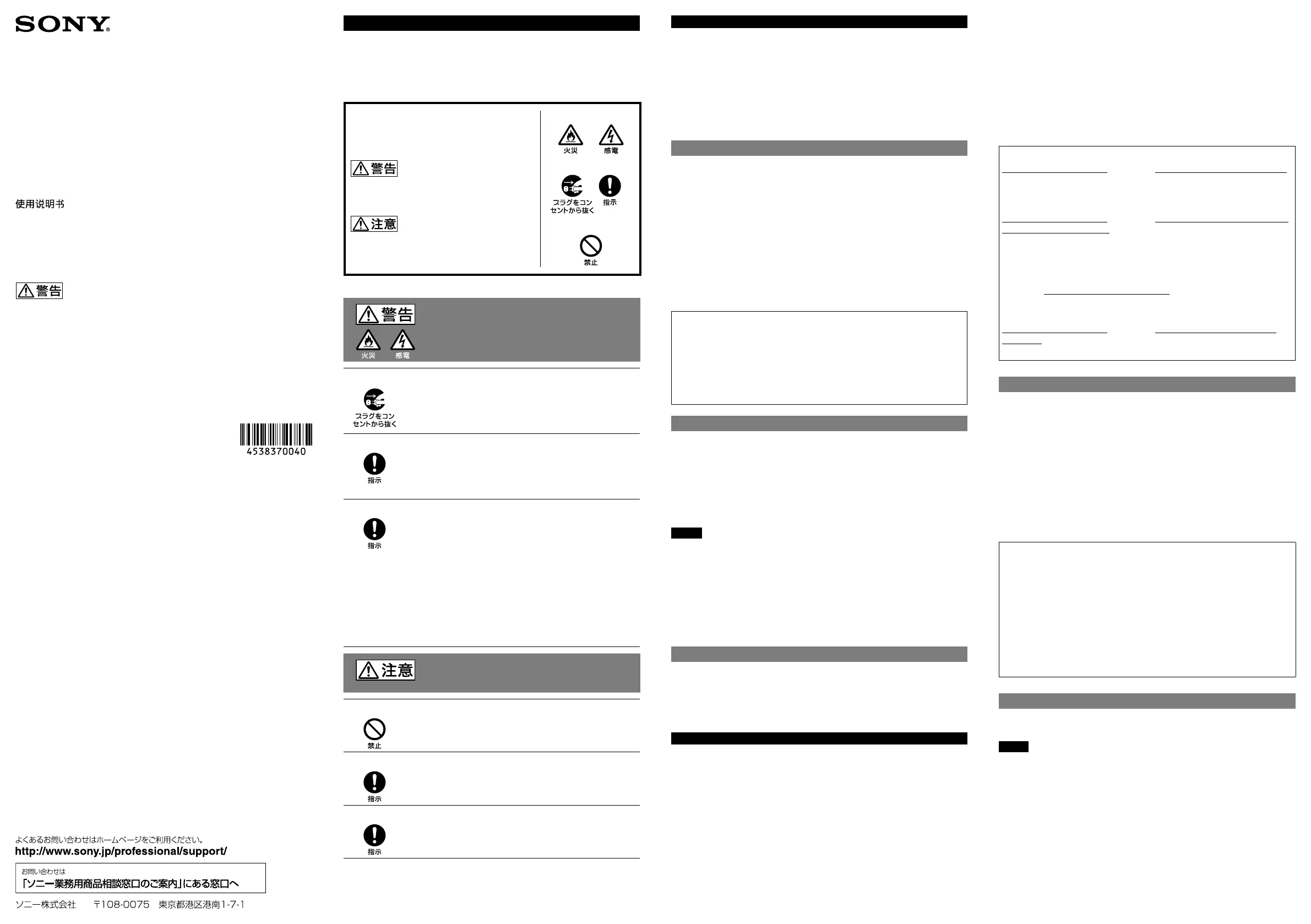 ソニー製品は安全に充分に配慮して設計されています。しかし、まちがった使い