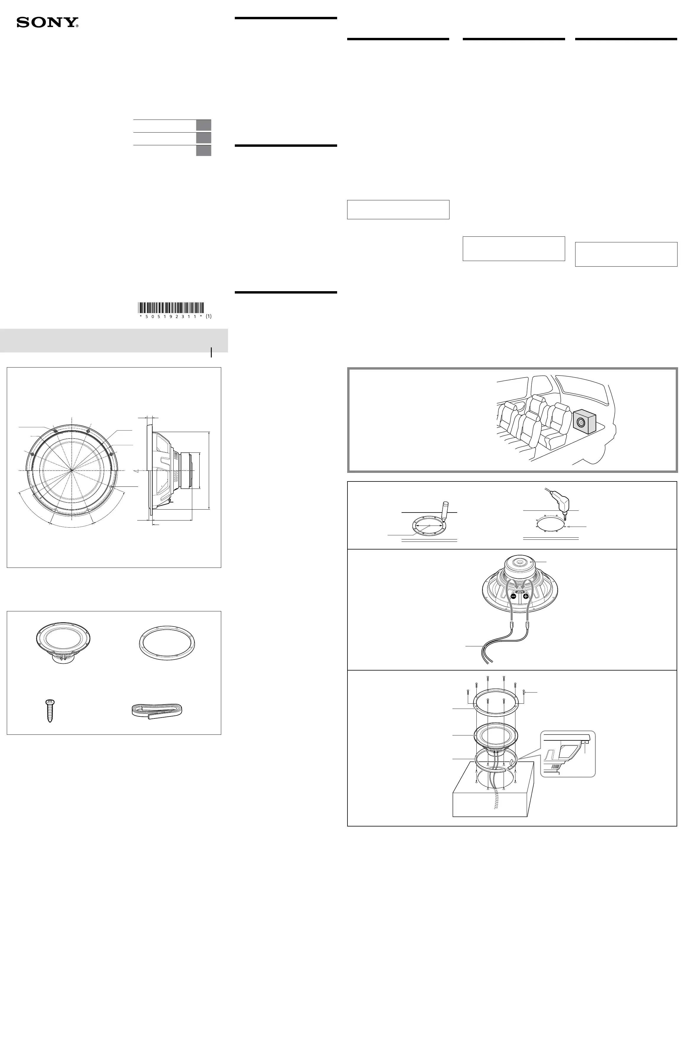 Hier is de Sony XS-W124GS (Autospeaker) gebruikershandleiding. 2 pagina's in taal Engels met een gewicht van 738,643.0 Mb. Als u geen antwoorden op uw probleem kunt vinden Vraag het onze community.