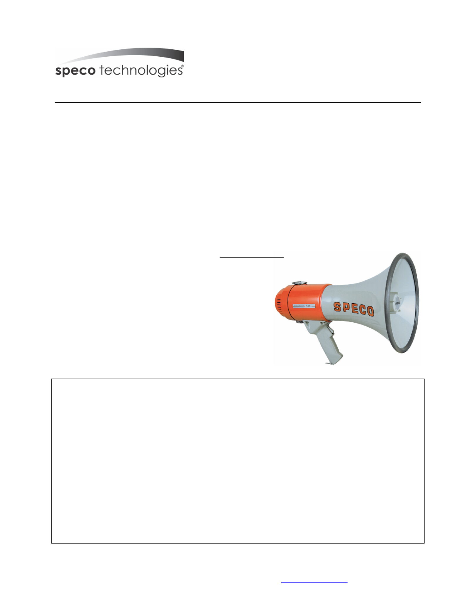 Thank you for your choice of Speco Technologies’ Megaphone. This unit is designed and manufactured to ER370