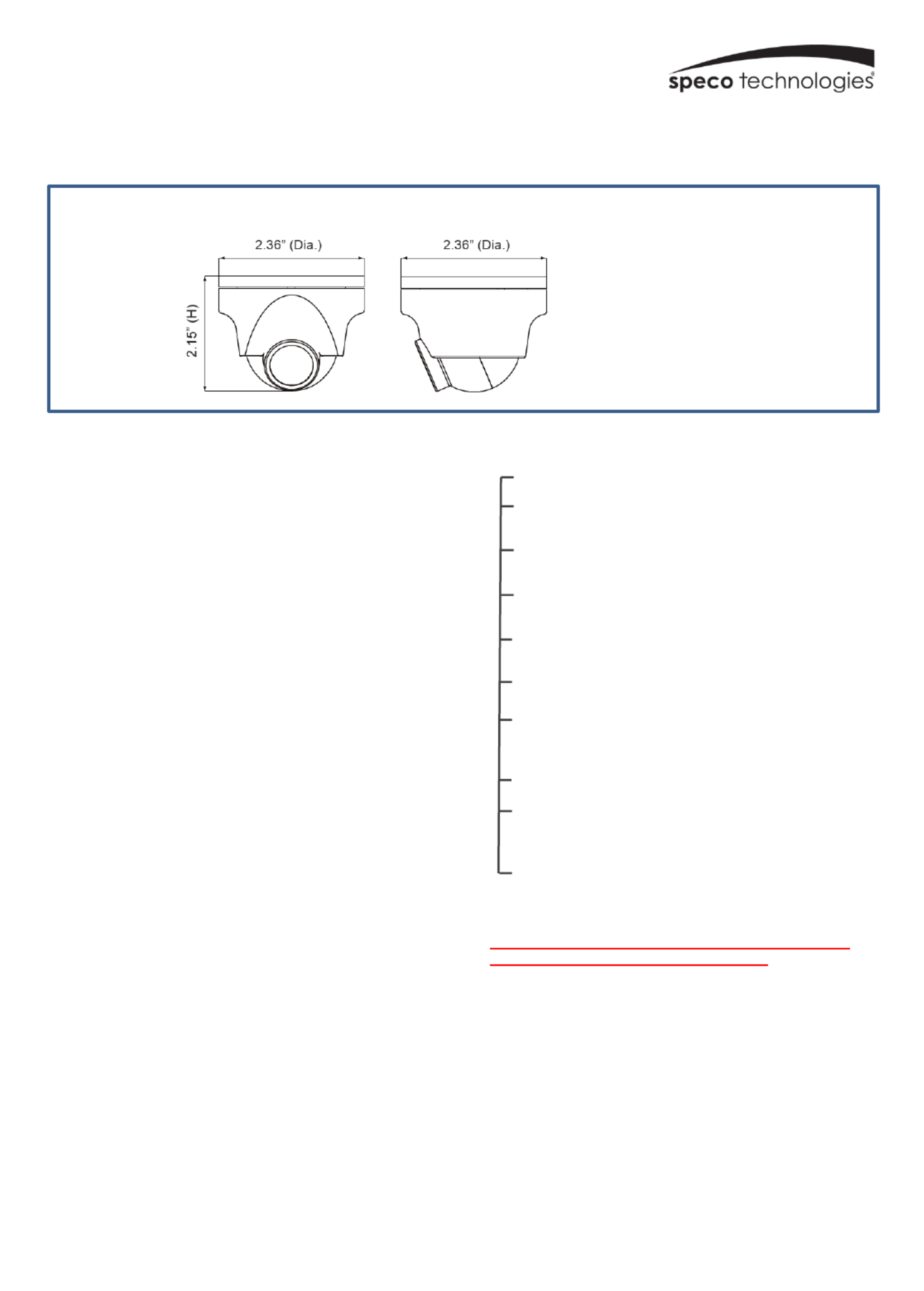 Hier is de Speco Technologies HT71TW (Bewakingscamera) gebruikershandleiding. 2 pagina's in taal Engels met een gewicht van 0.7 Mb. Als u geen antwoorden op uw probleem kunt vinden Vraag het onze community.