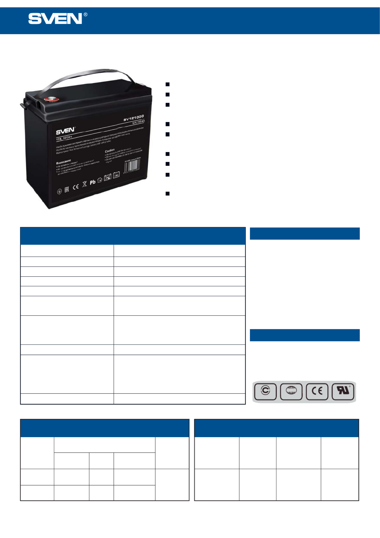100 A•h at 20Hr-rate to 10.5V/cell