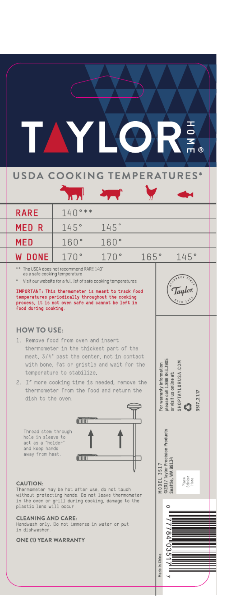 Hier is de Taylor 3517 (Voedsel thermometer) gebruikershandleiding. 1 pagina's in taal Engels met een gewicht van 0.1 Mb. Als u geen antwoorden op uw probleem kunt vinden Vraag het onze community.
