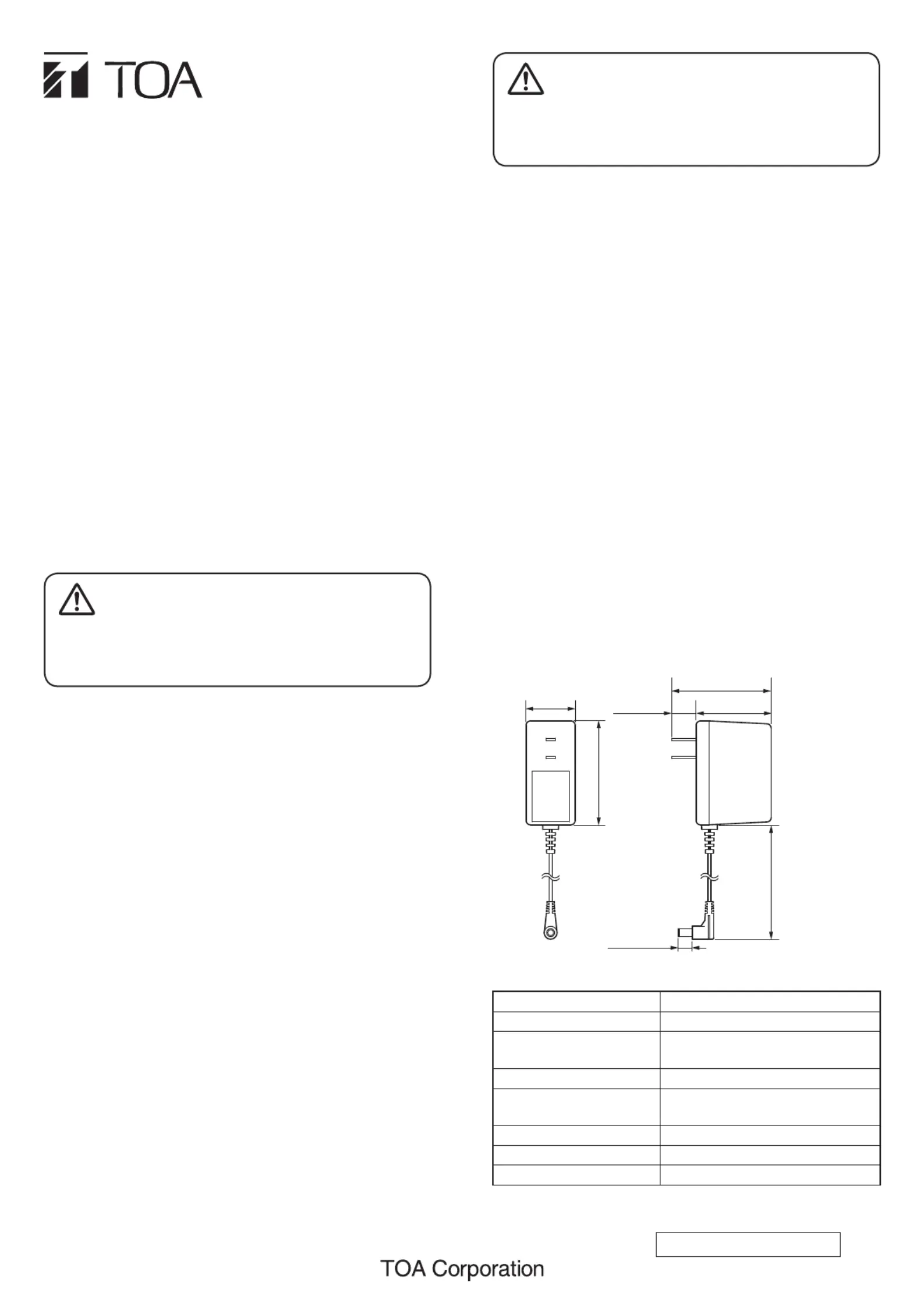 Thank you for purchasing TOA's AC Adapter.
