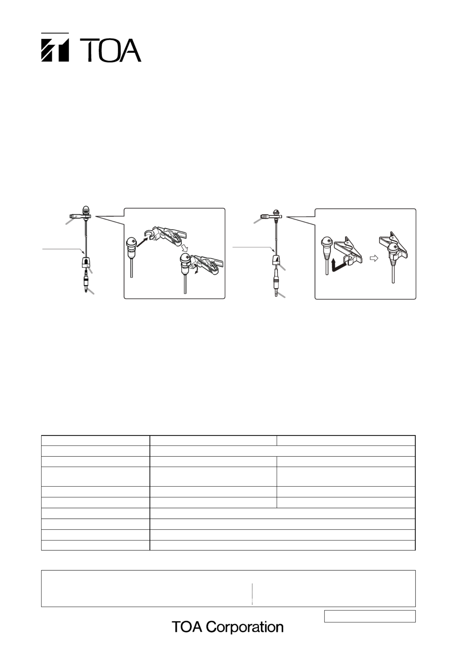 The YP-M5300 and YP-M5310 Lavalier microphones are designed for use with TOA wireless transmitter.