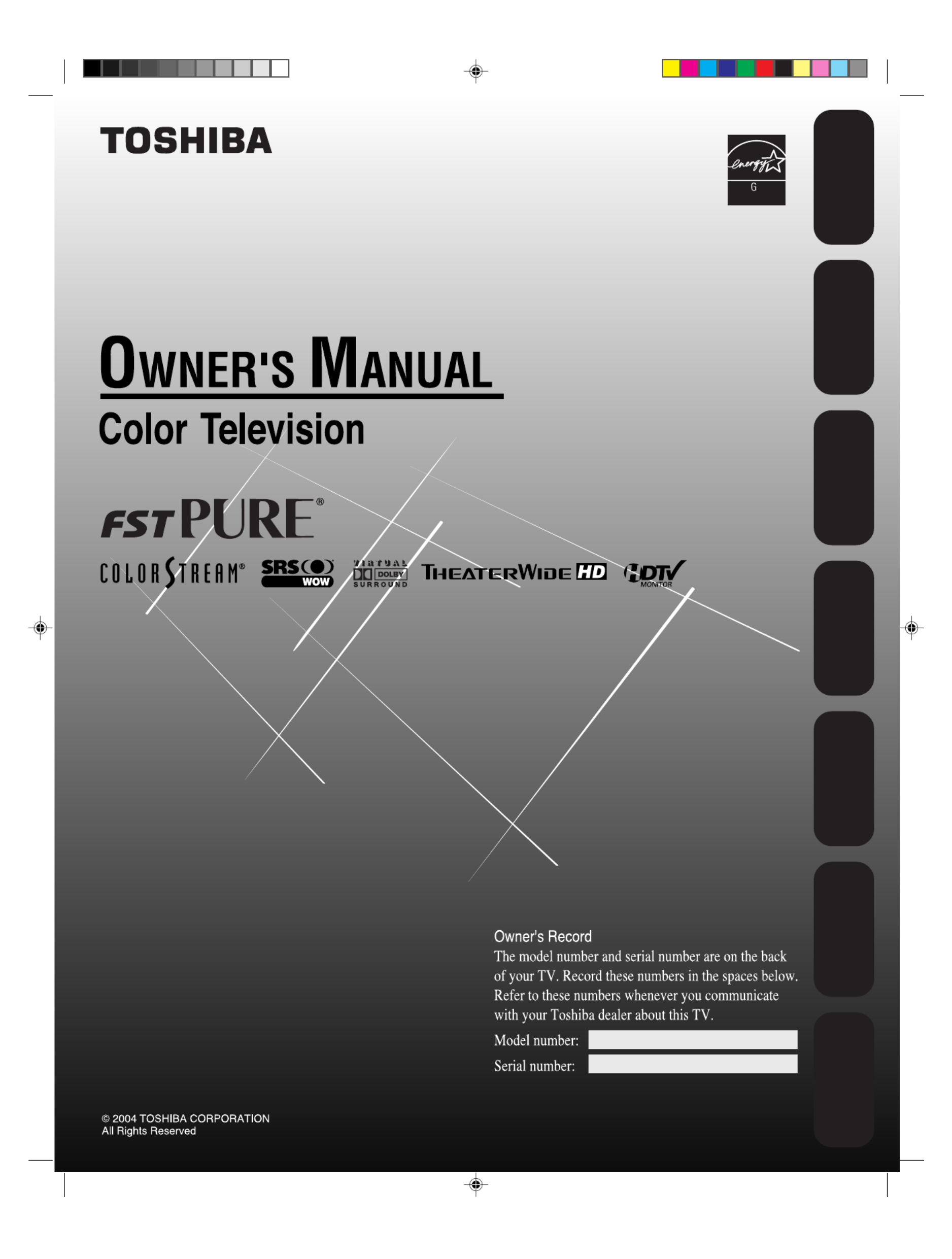 Hier is de Toshiba Cinema 30HFX84 (Televisie) gebruikershandleiding. 50 pagina's in taal Engels met een gewicht van 5.7 Mb. Als u geen antwoorden op uw probleem kunt vinden Vraag het onze community.