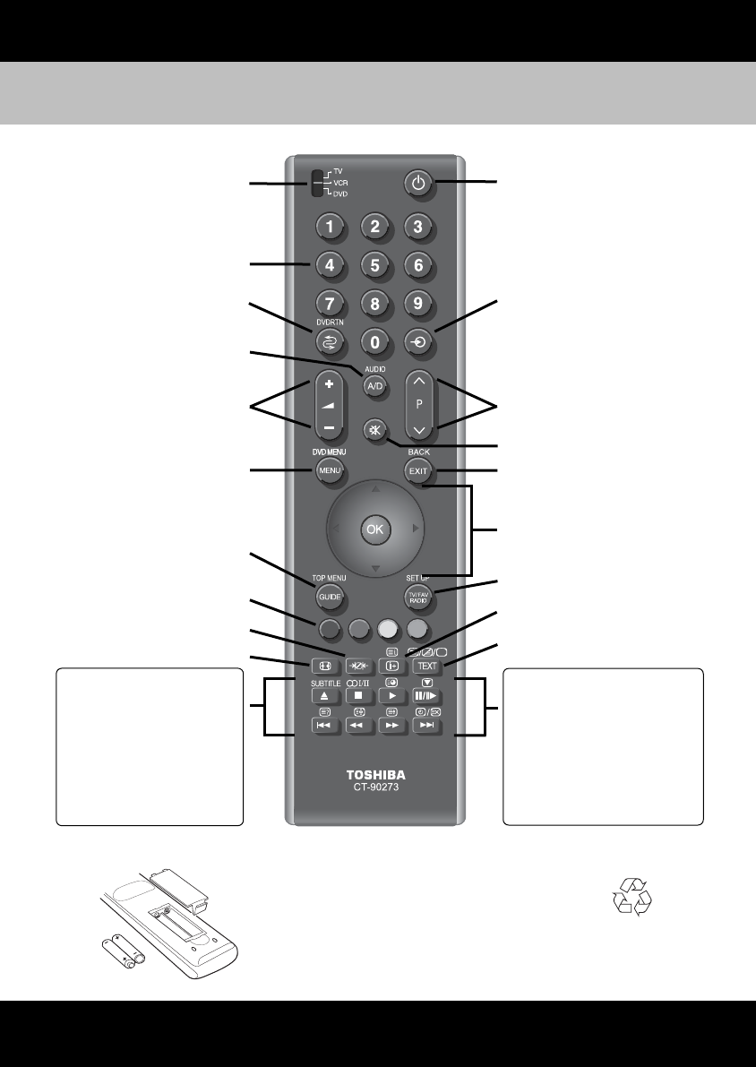 When using a TOSHIBA VCR or DVD: