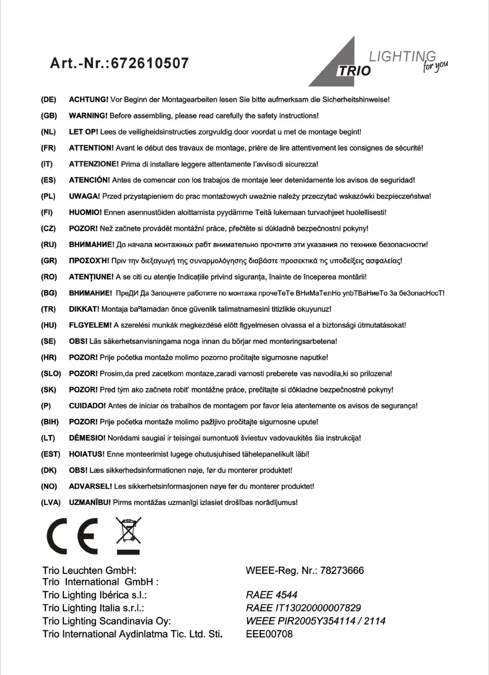 Trio Lighting Vision 672610507 Handleiding