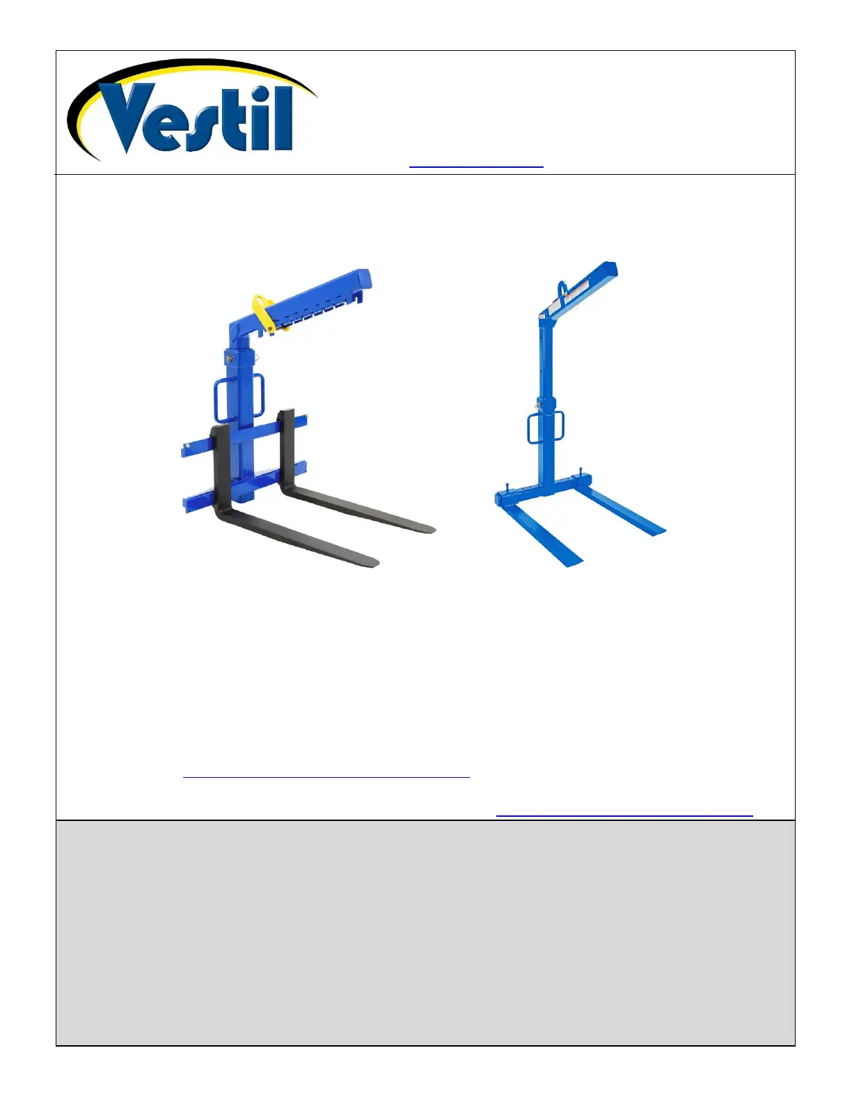 Additional copies of this instruction manual may be downloaded from https://www.vestil.com/page-manuals.php.