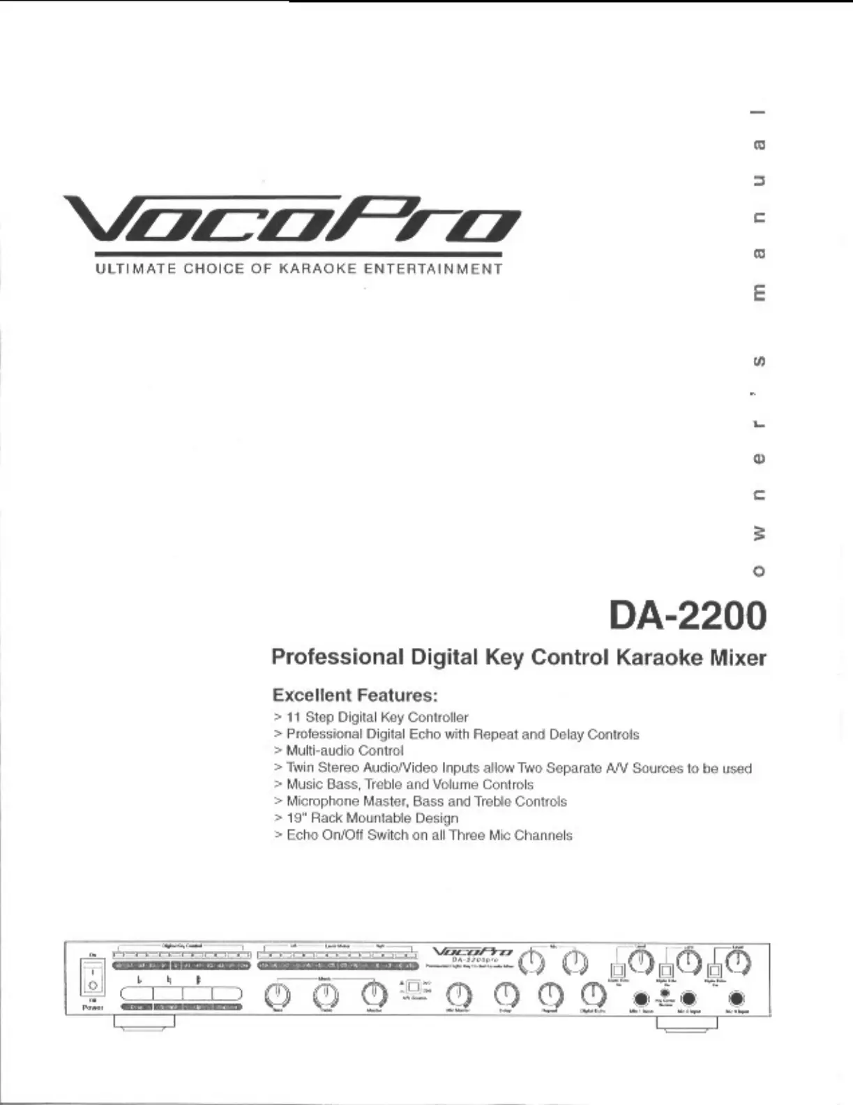 Hier is de Vocopro DA-2200PRO (Karaoke systeem) gebruikershandleiding. 7 pagina's in taal met een gewicht van 4,322,200.0 Mb. Als u geen antwoorden op uw probleem kunt vinden Vraag het onze community.
