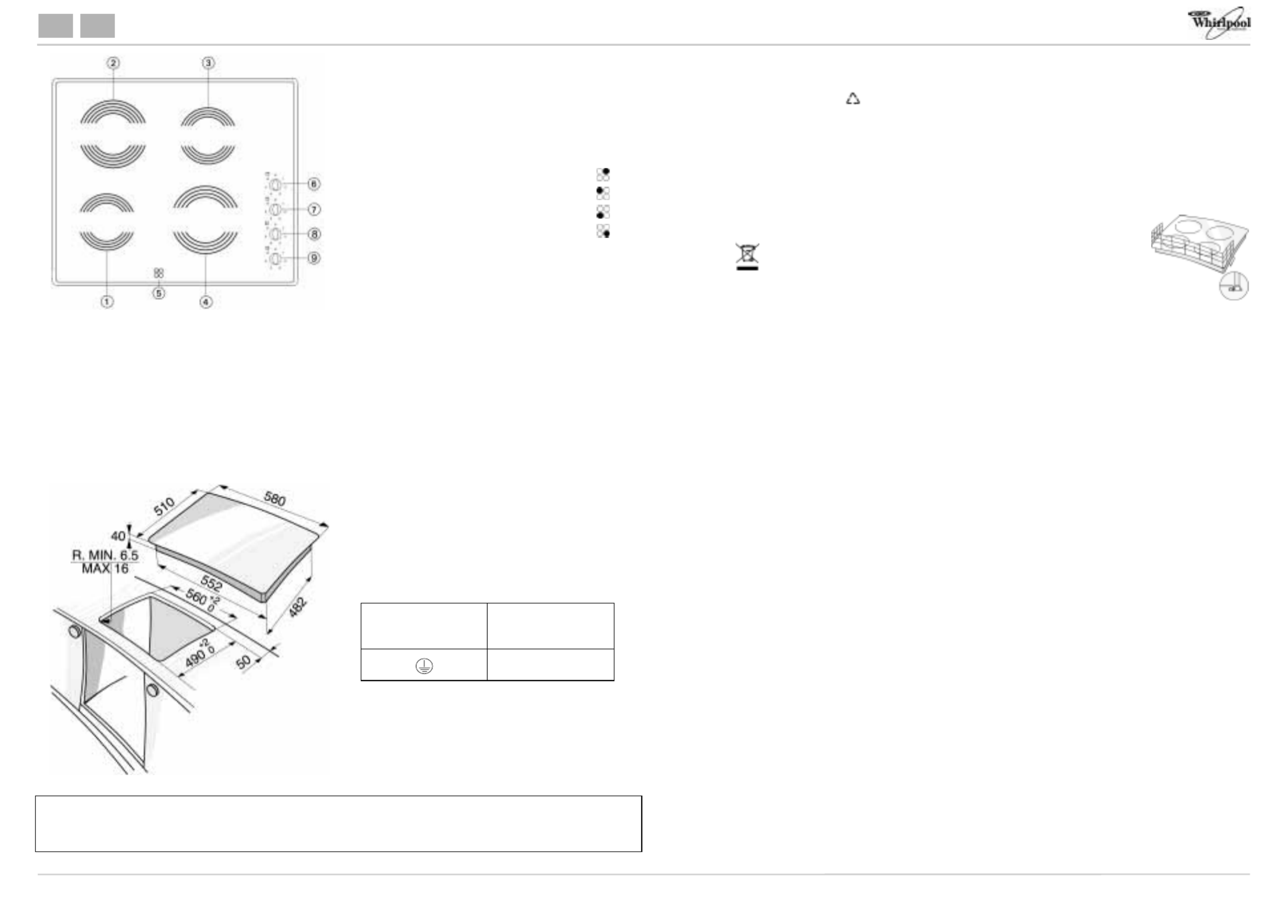 5019 319 62072 To get full satisfaction from the hob, please read these instructions carefully and keep them for future consultation. Whirlpool is a registered trademark of Whirlpool USA