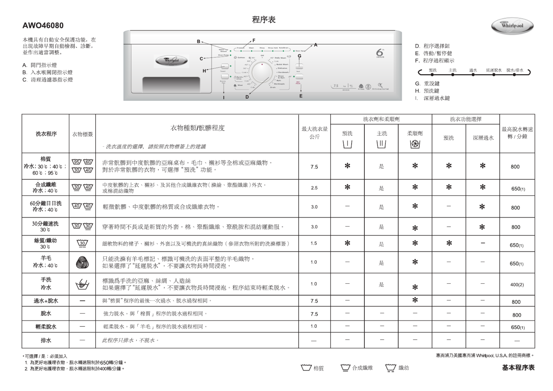 Hier is de Whirlpool AWO 46080 (Wasmachine) gebruikershandleiding. 4 pagina's in taal Engels met een gewicht van 0.8 Mb. Als u geen antwoorden op uw probleem kunt vinden Vraag het onze community.