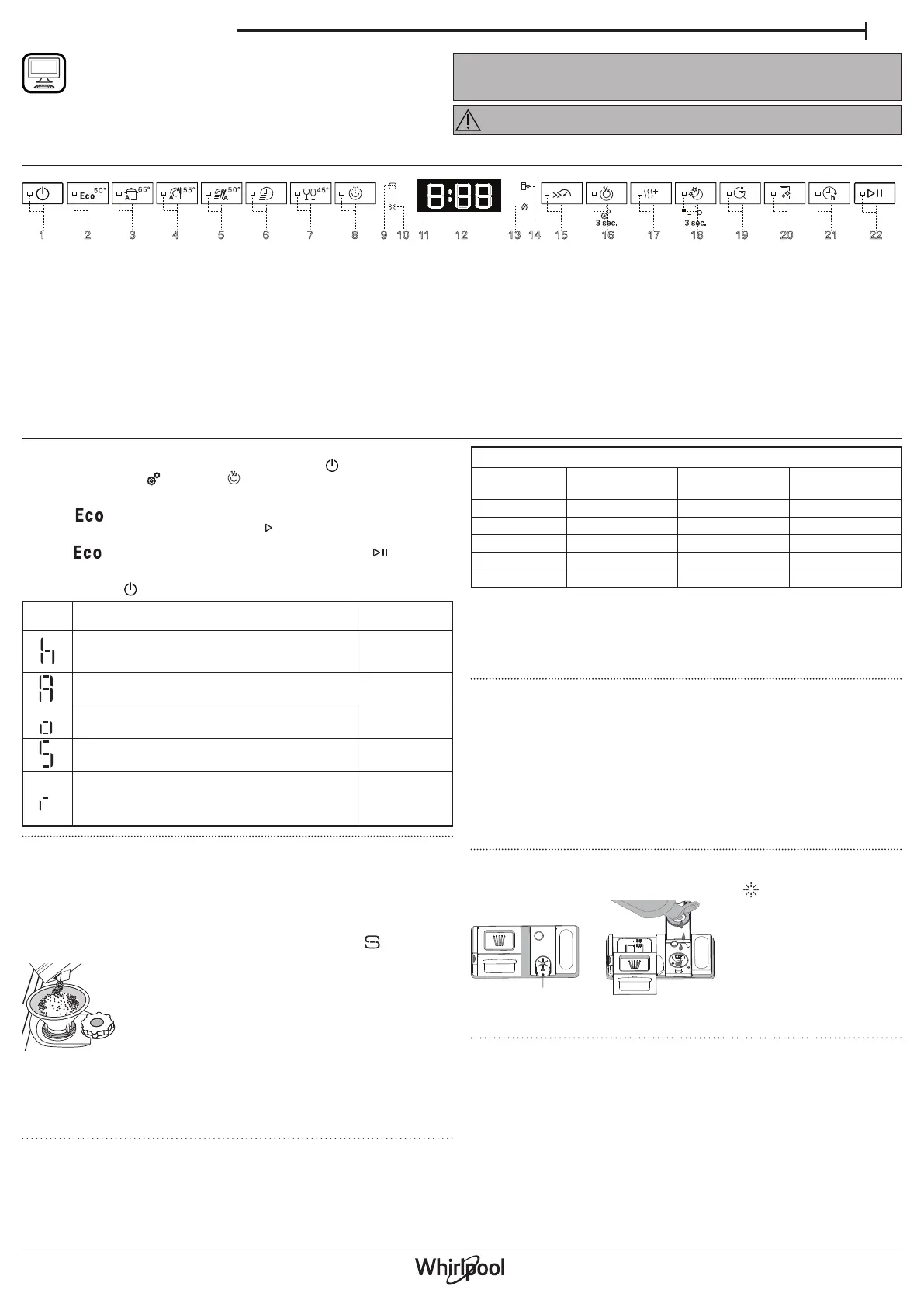 16. Half Load option button with indicator light/ Settings - 3 sec. press